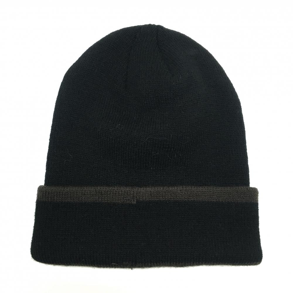【新品】アディダス ニット帽 黒×ブラウン ライン ロゴ刺しゅう フリー(57-59cm) ゴルフウェア adidas