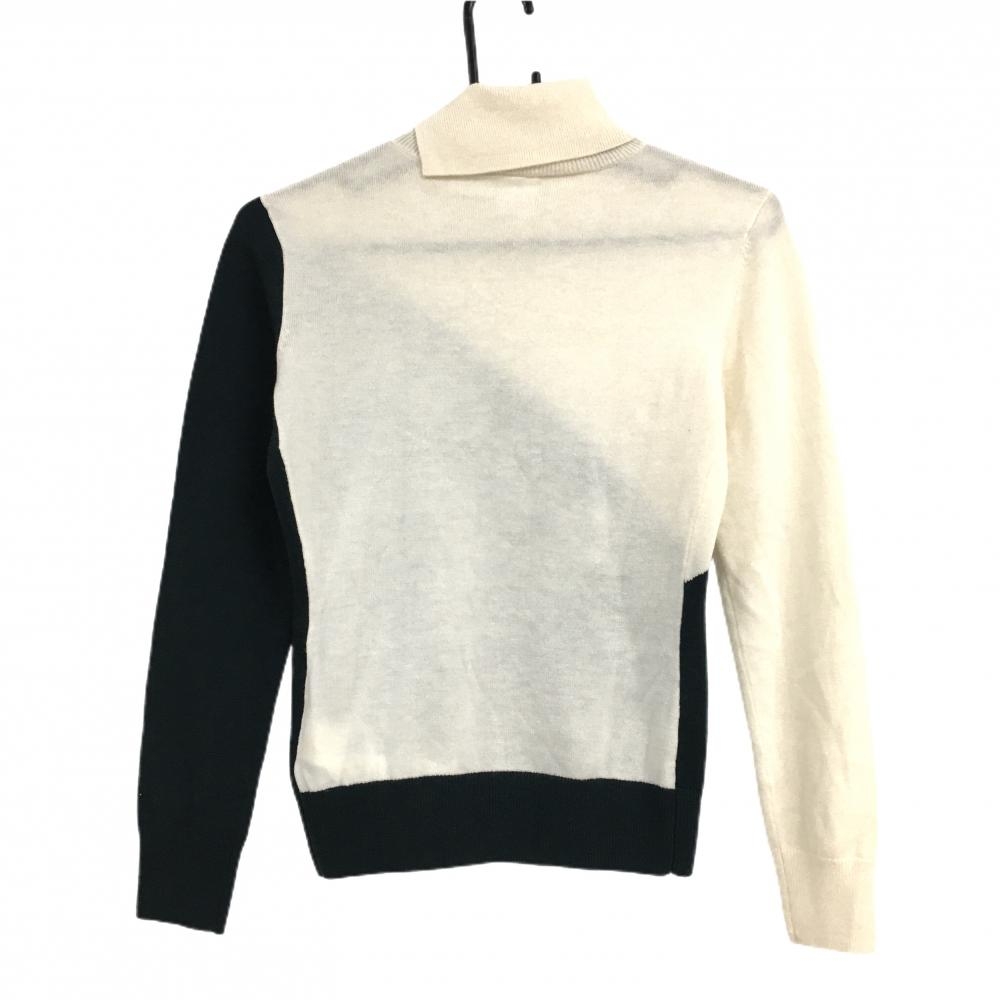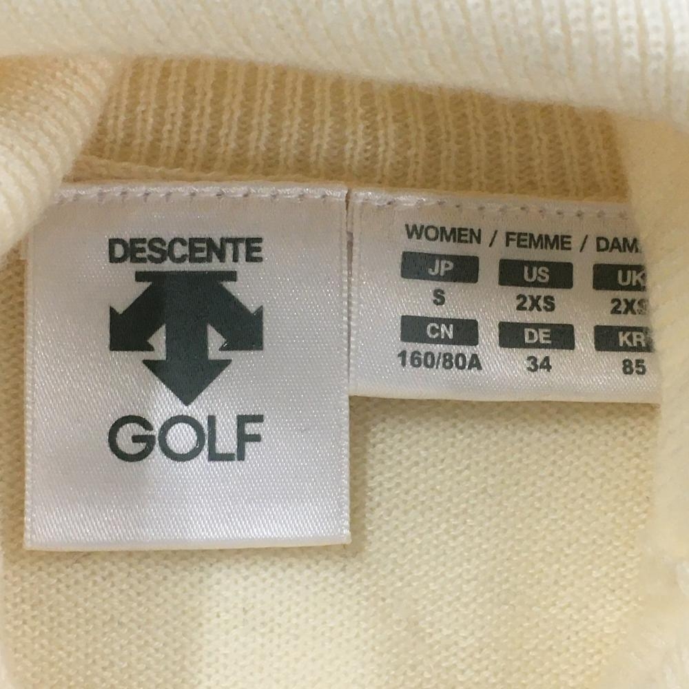 【美品】デサントゴルフ ハイネックセーター グリーン×アイボリー ウール混 中田英寿 ニット レディース S ゴルフウェア DESCENTE