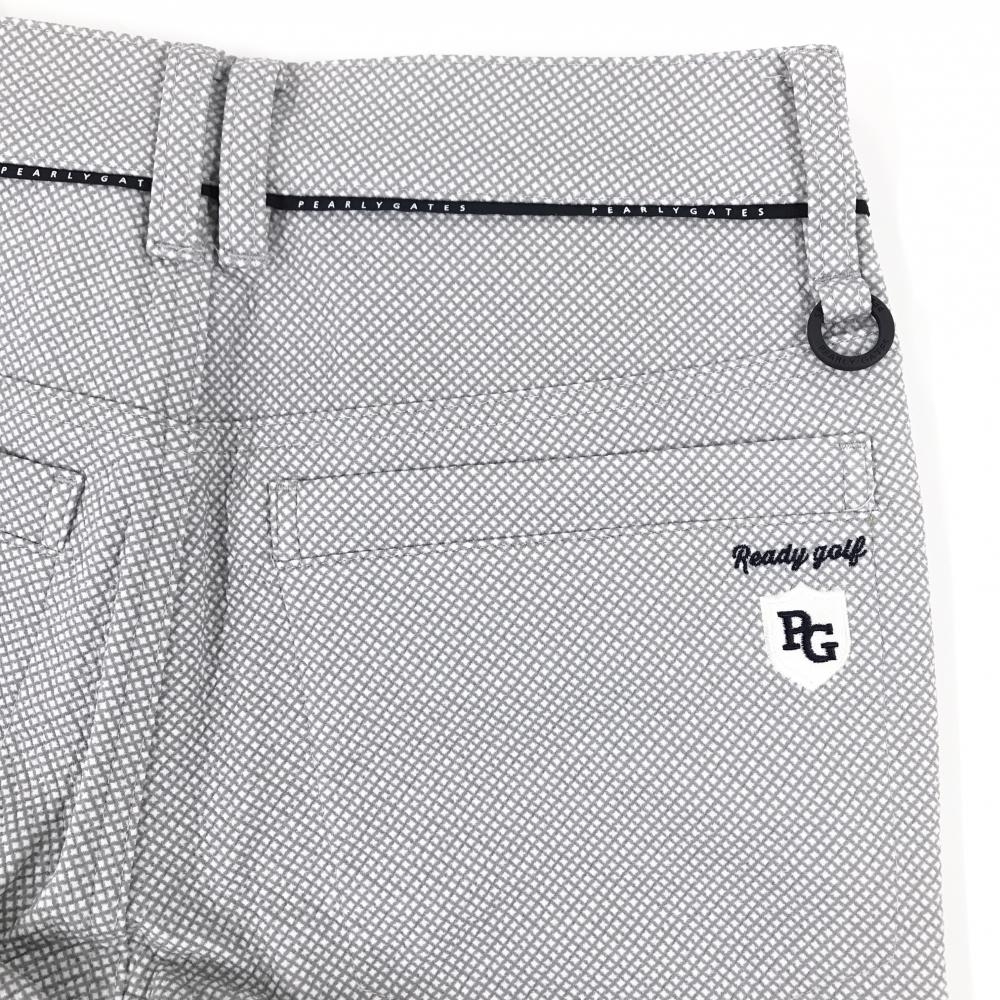 【新品】パーリーゲイツ パンツ 白×グレー ダイヤ柄風 ロゴライン レディース 00(XS) ゴルフウェア PEARLY GATES