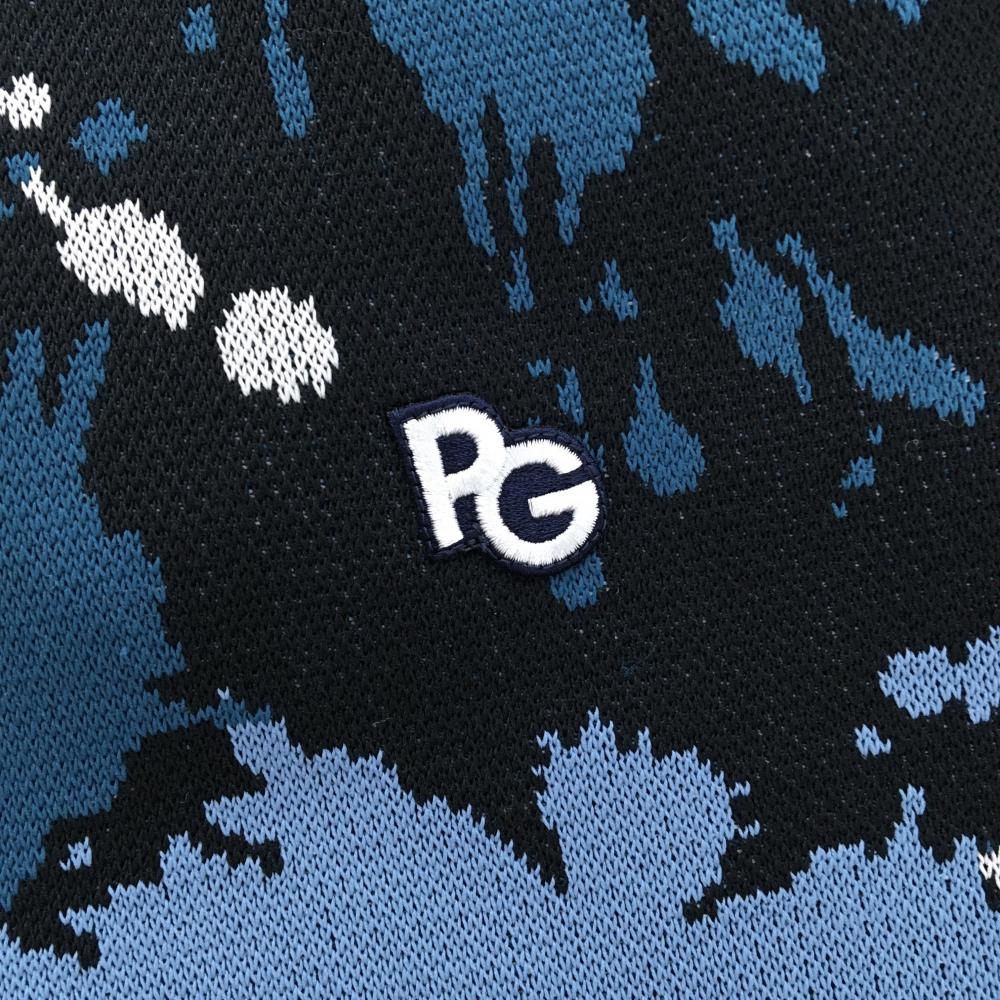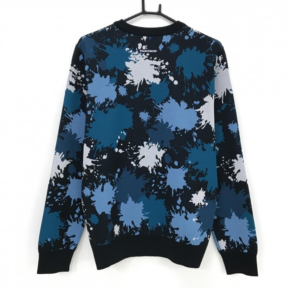 【新品】パーリーゲイツ セーター ダークネイビー×ブルー系×白 総柄 胸ロゴ ニット メンズ 5(L) ゴルフウェア PEARLY GATES