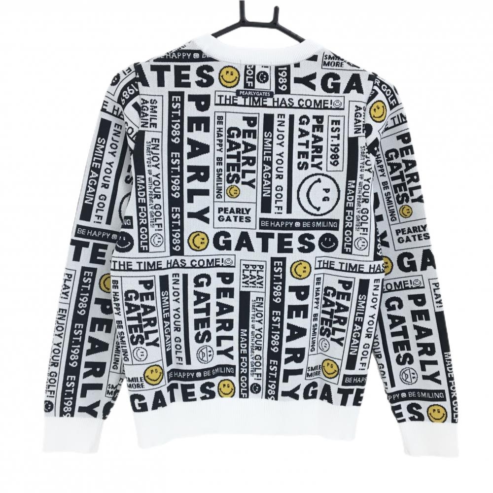【新品】パーリーゲイツ セーター 白×黒 総柄 ニコちゃん スマイル ニット レディース 0(S) ゴルフウェア PEARLY GATES