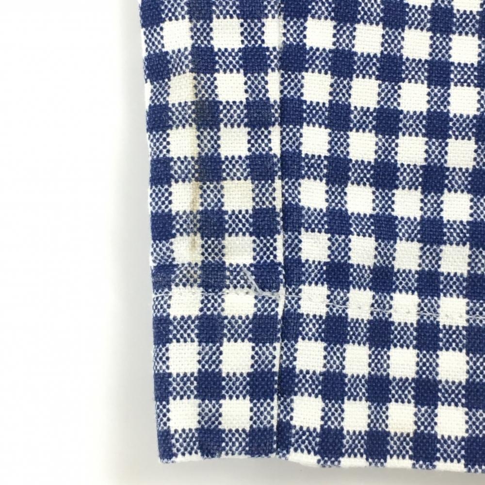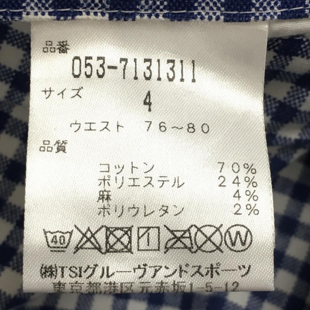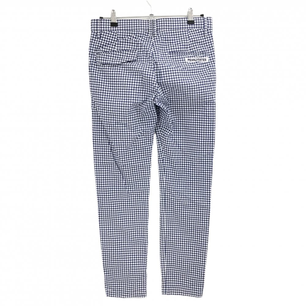 【美品】パーリーゲイツ パンツ 白×ブルー チェック コットン混 ロゴ刺しゅう メンズ 4(M) ゴルフウェア PEARLY GATES