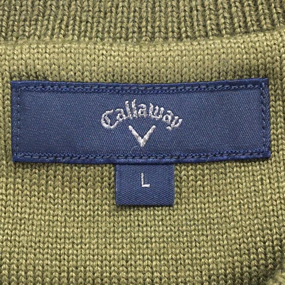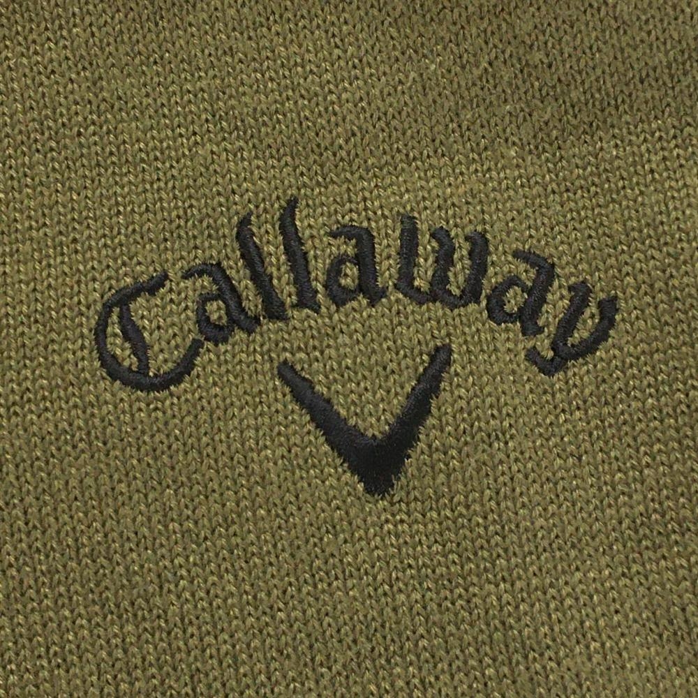【超美品】キャロウェイ ニットベスト カーキ×ライトグレー ロゴ刺しゅう メンズ L ゴルフウェア 2024年モデル Callaway