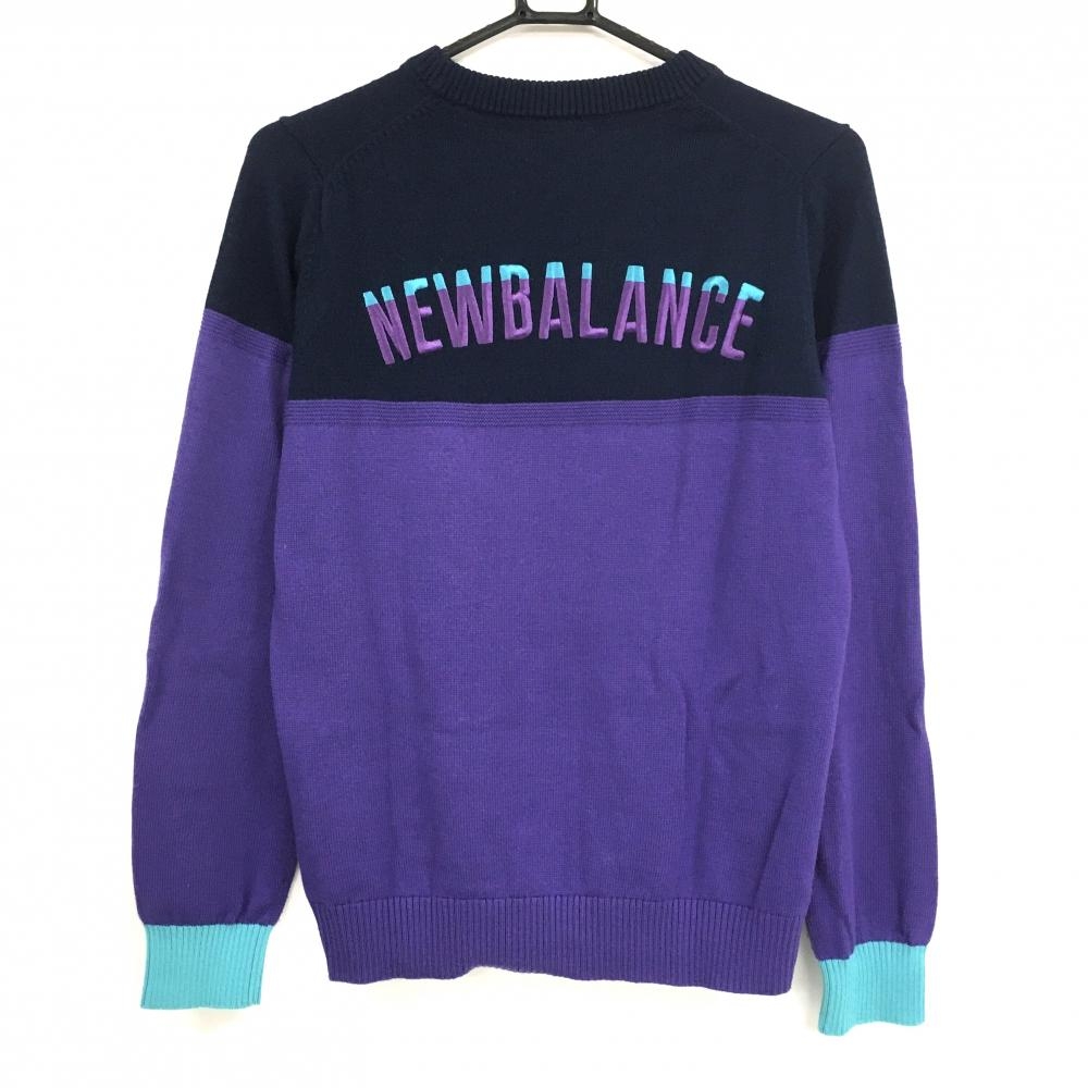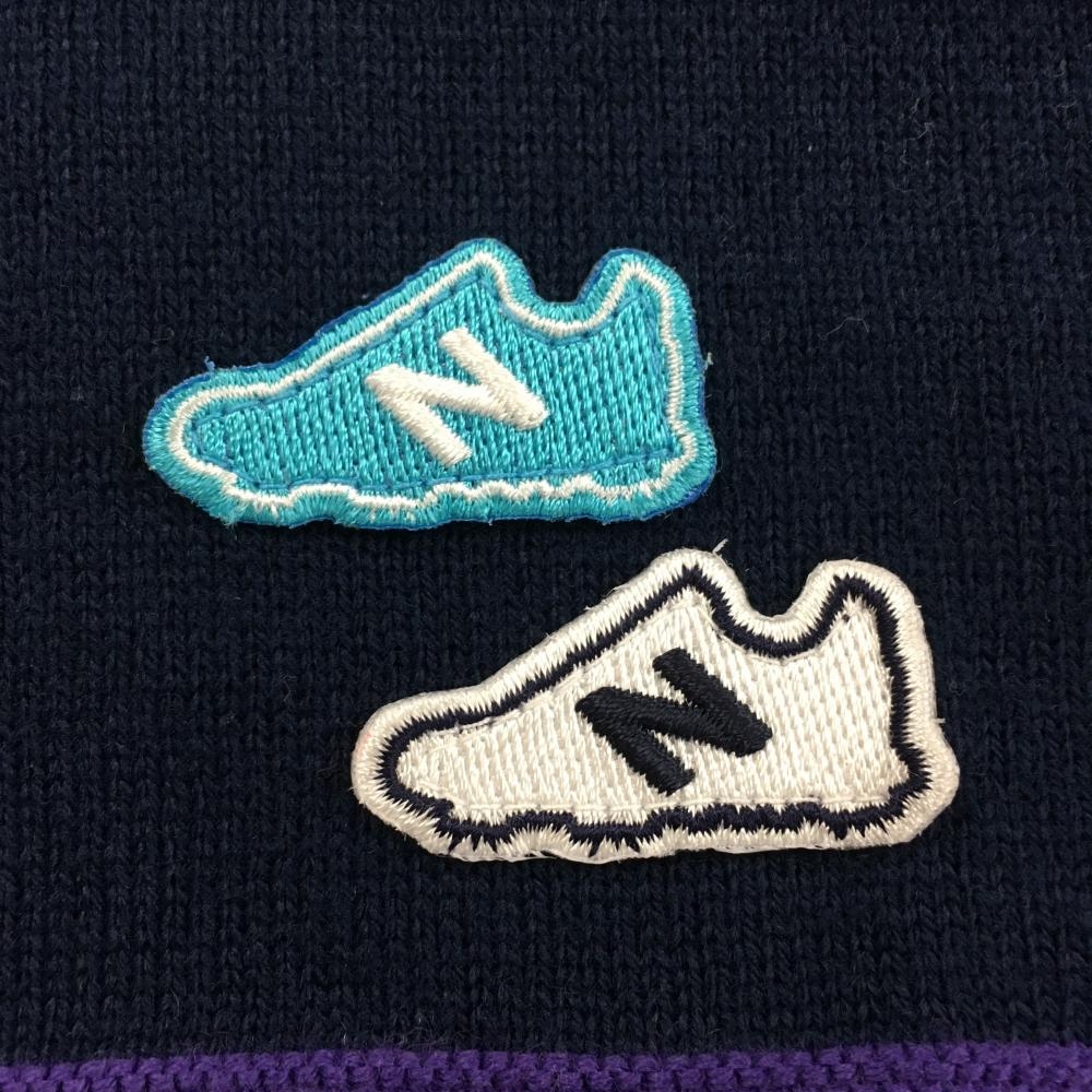 ニューバランスゴルフ セーター ネイビー×パープル スニーカーワッペン ウール混 ニット レディース L ゴルフウェア New Balance