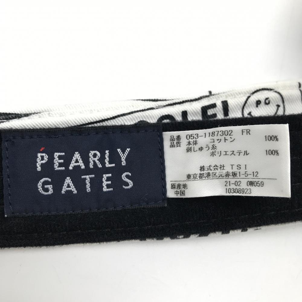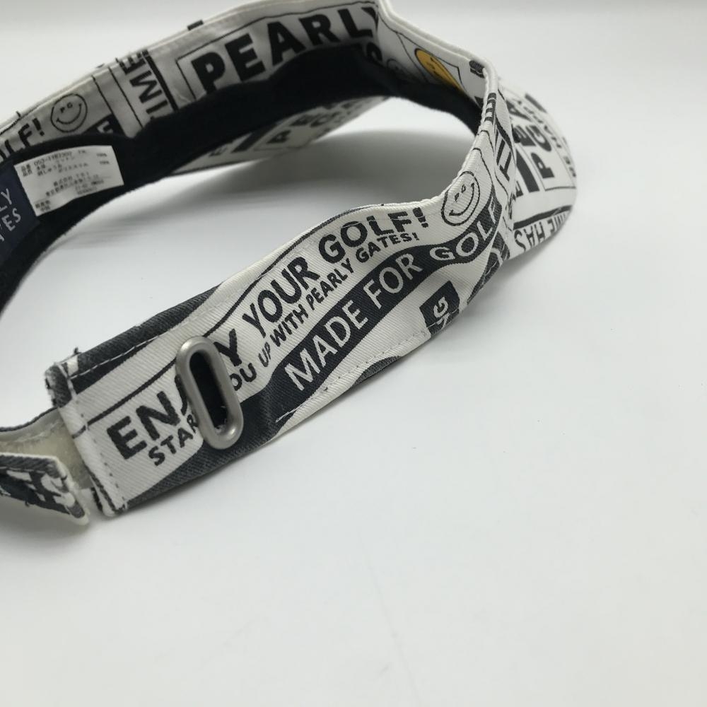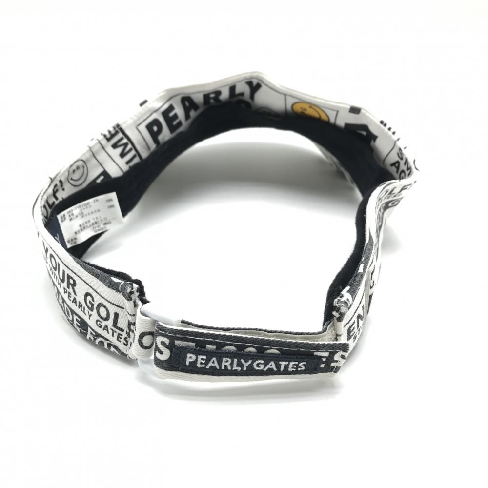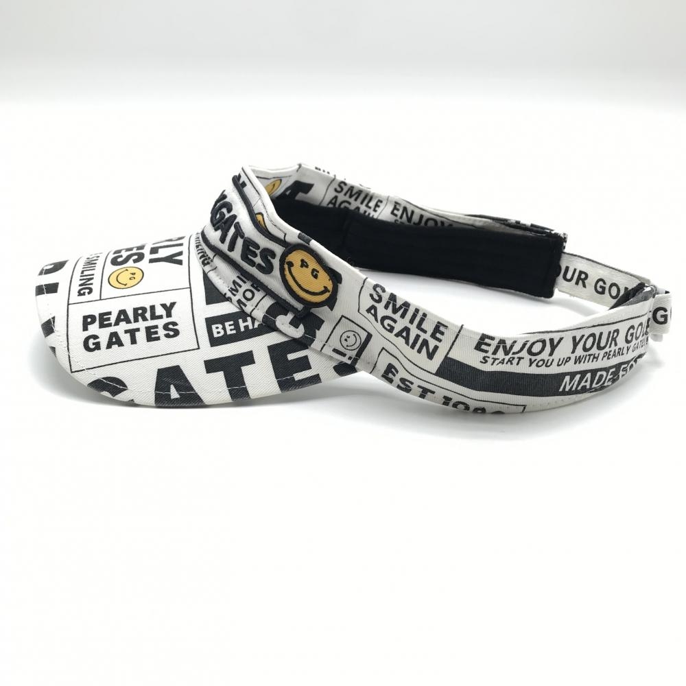 パーリーゲイツ サンバイザー 白×ネイビー ロゴ総柄 ニコちゃん スマイル FR ゴルフウェア PEARLY GATES