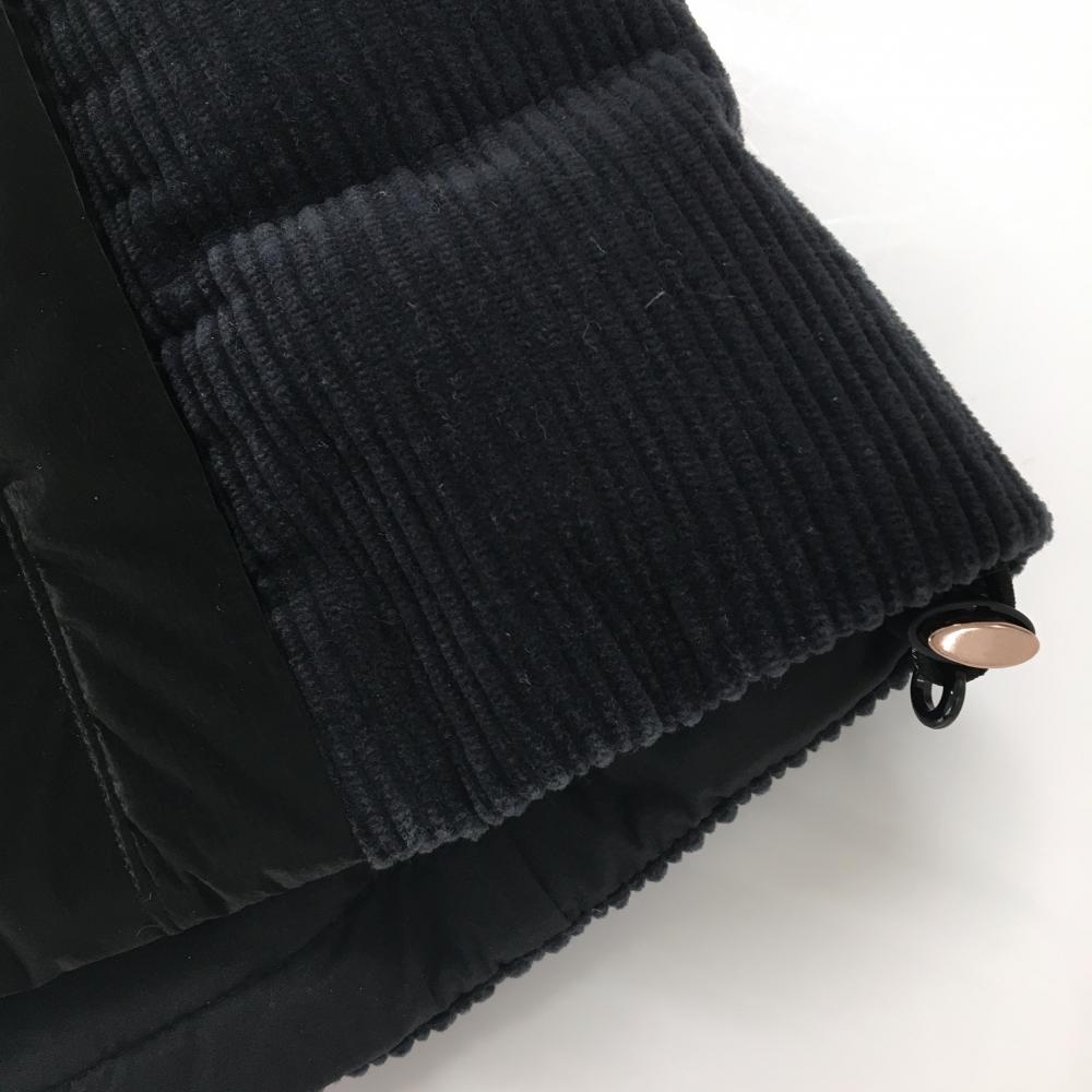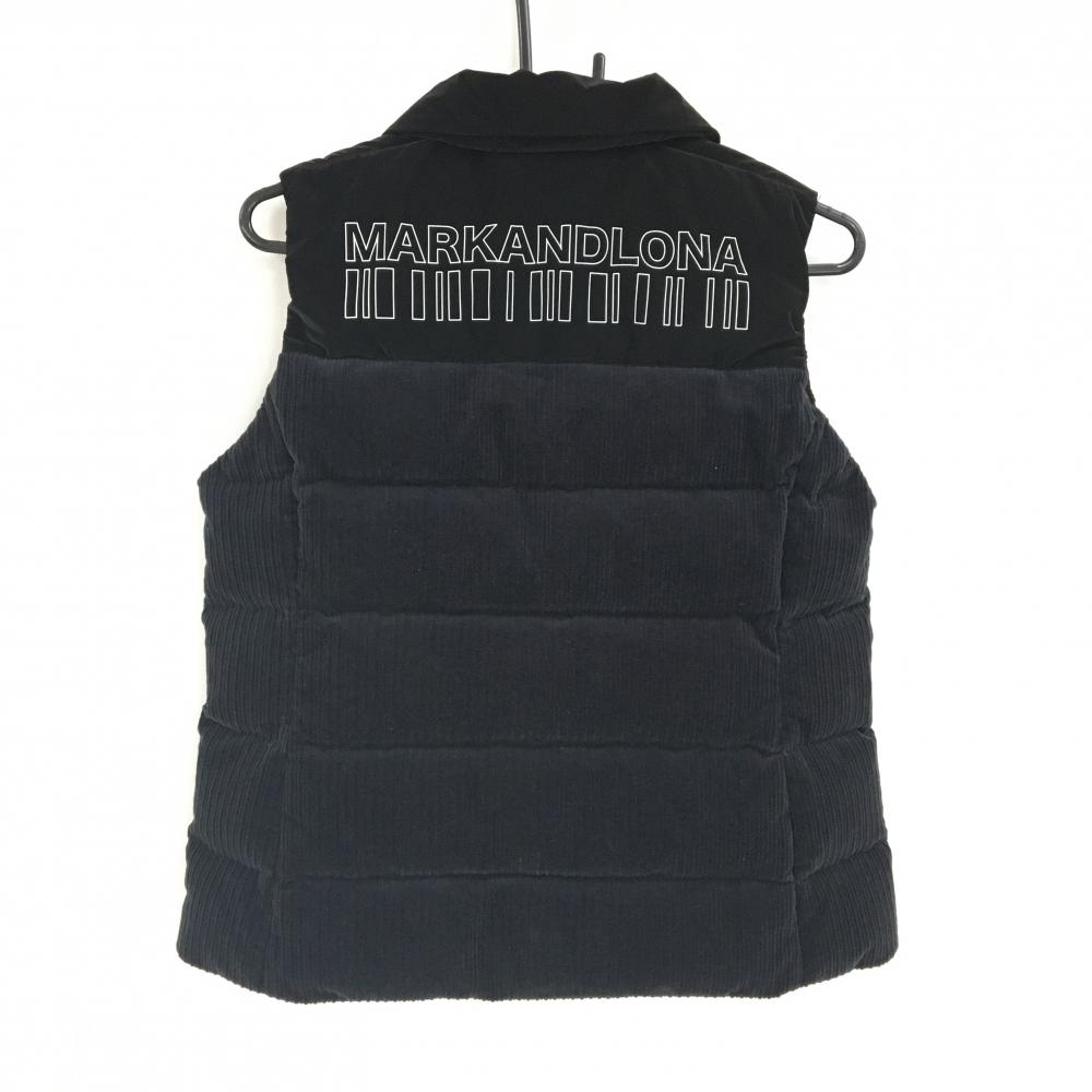 【超美品】マークアンドロナ ダウンベスト 黒 サイド・背面コーデュロイ スナップボタン ロゴ レディース 38(M) ゴルフウェア MARK&LONA