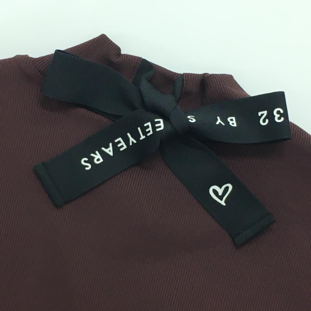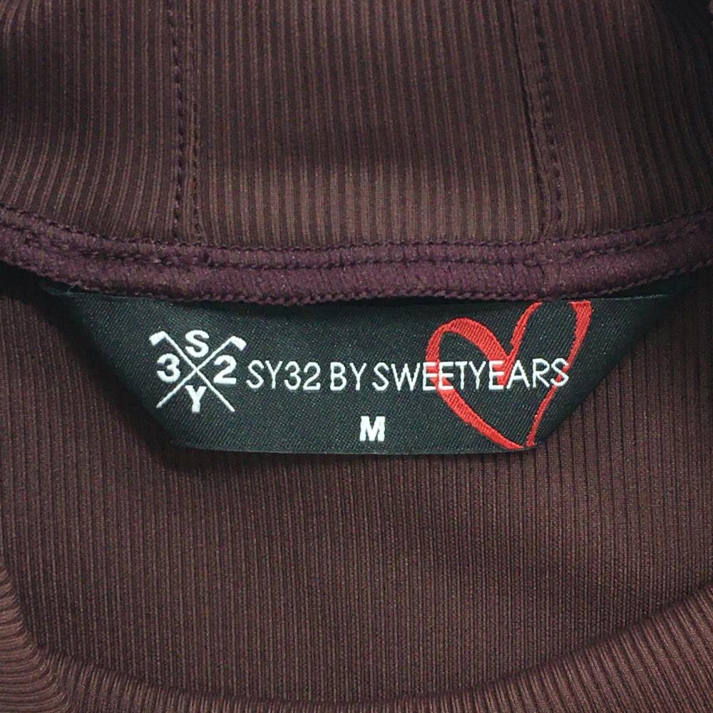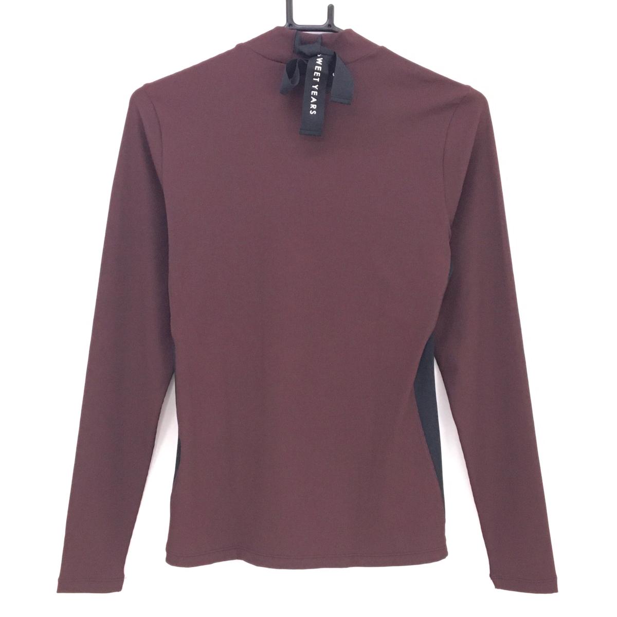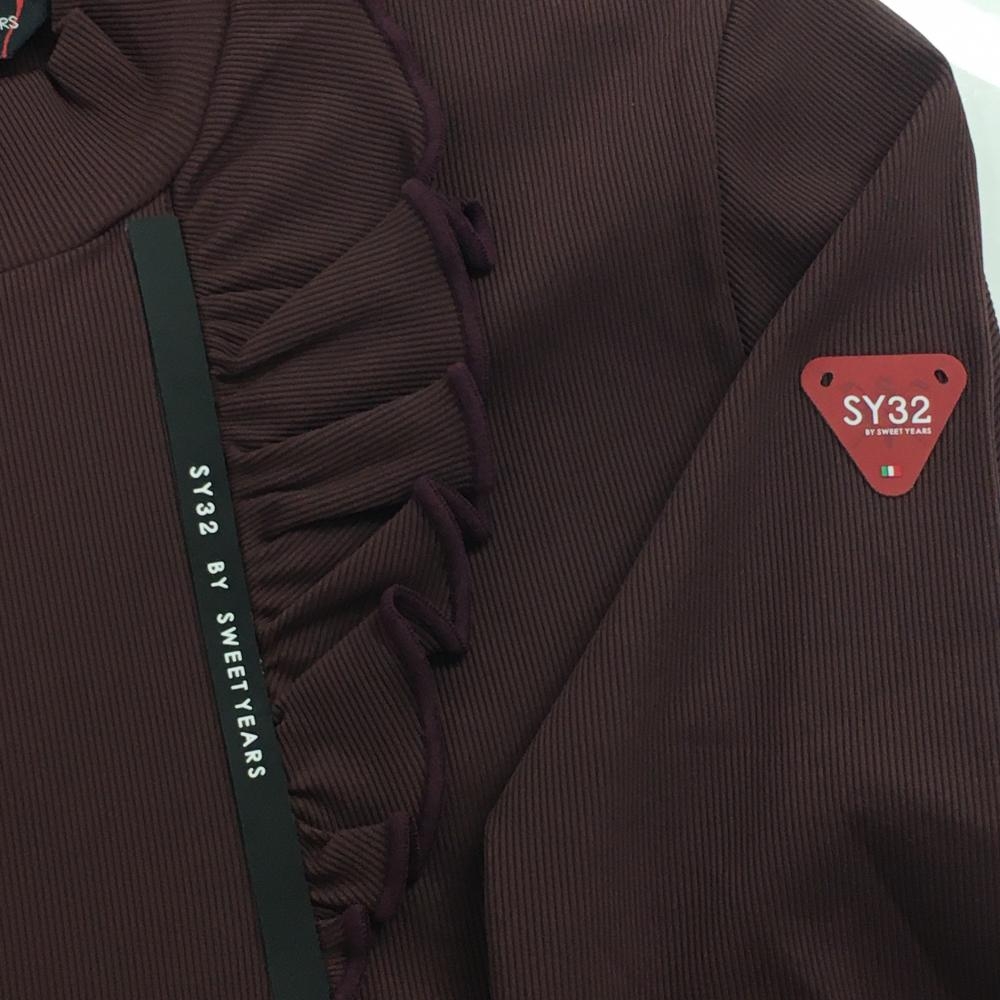 【超美品】SY32 長袖ハイネックシャツ ボルドー系×黒 一部フリル ロゴ レディース M ゴルフウェア SY32 BY SWEET YEARS