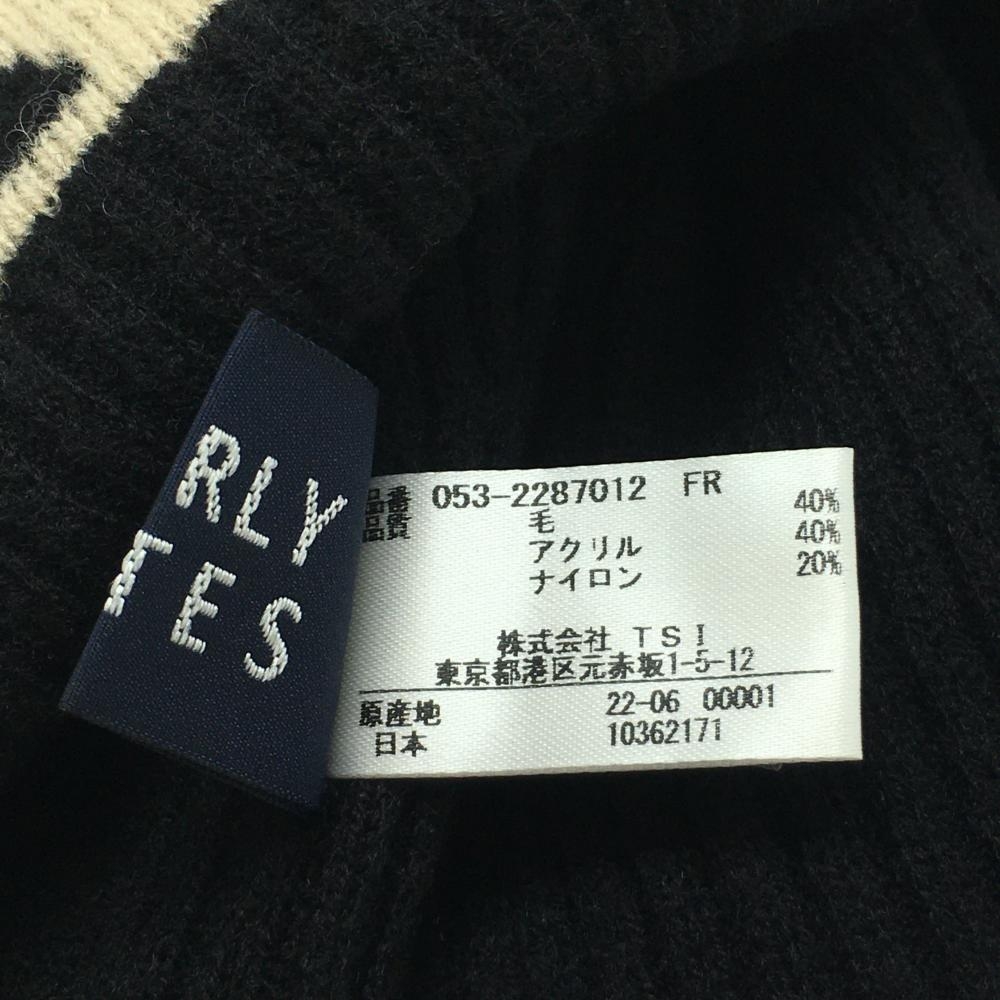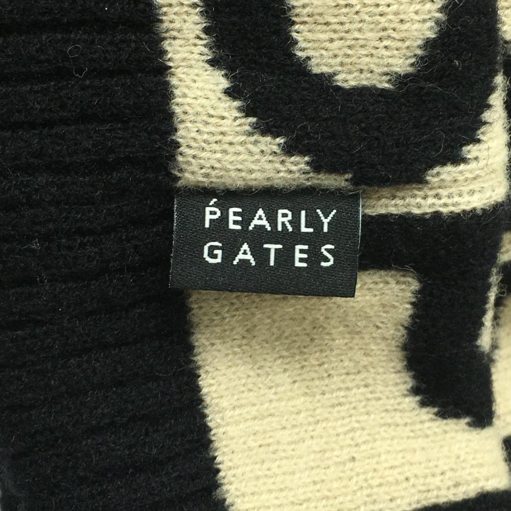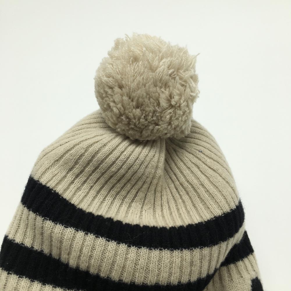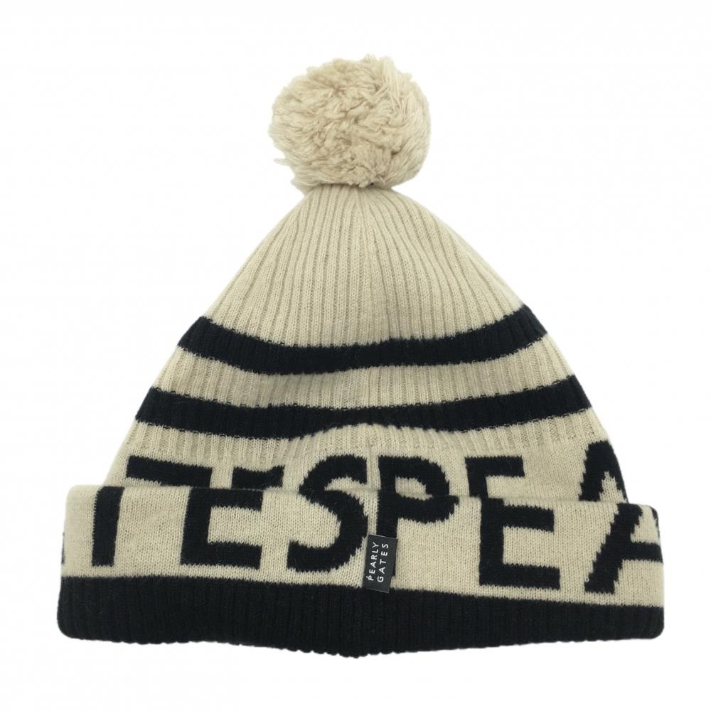 【超美品】パーリーゲイツ ニット帽 ベージュ×黒 ボンボン付き ウール混 FR ゴルフウェア PEARLY GATES