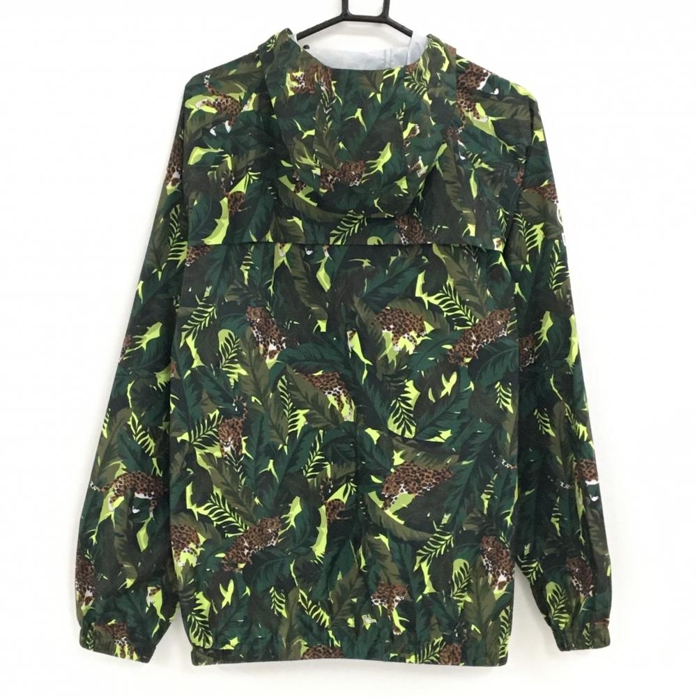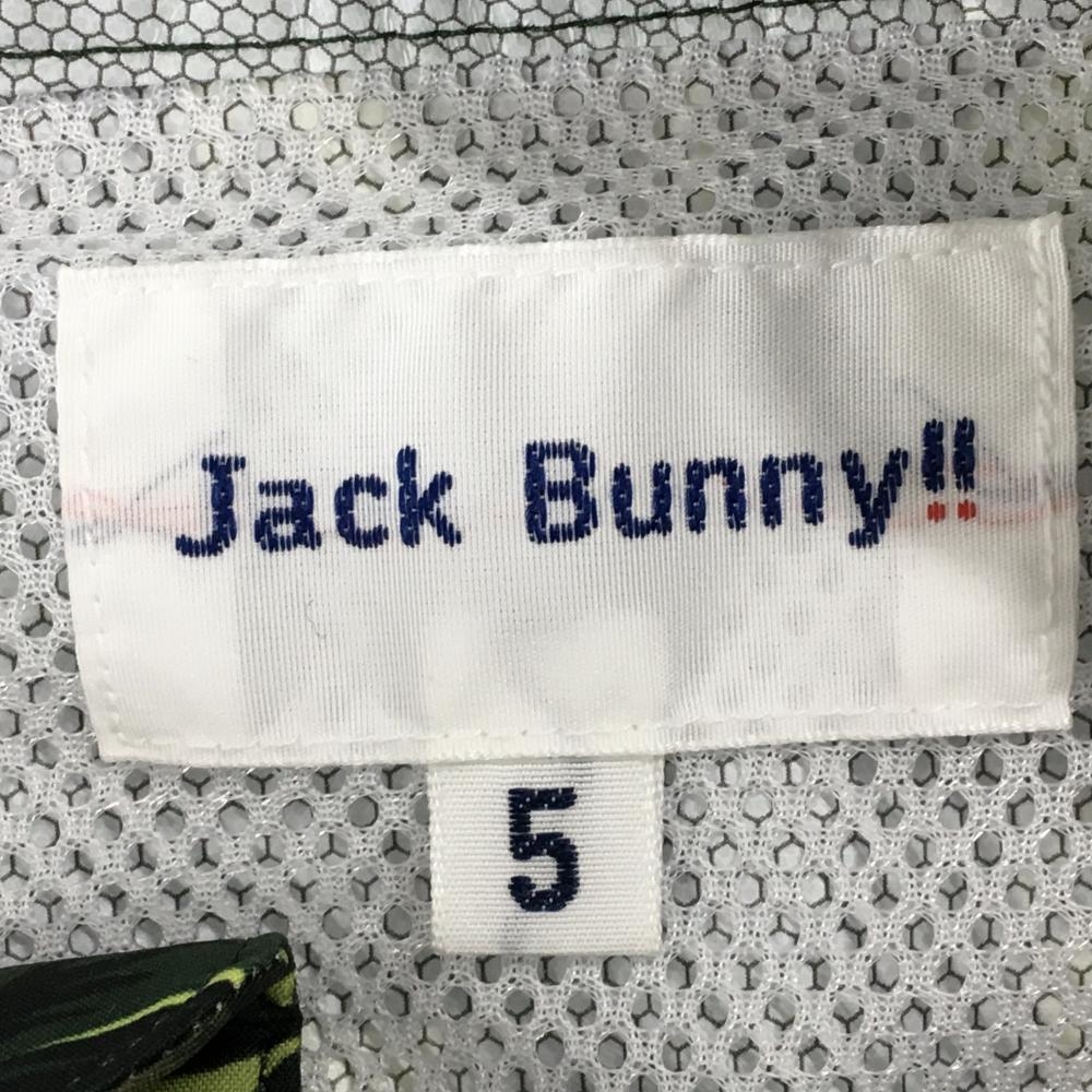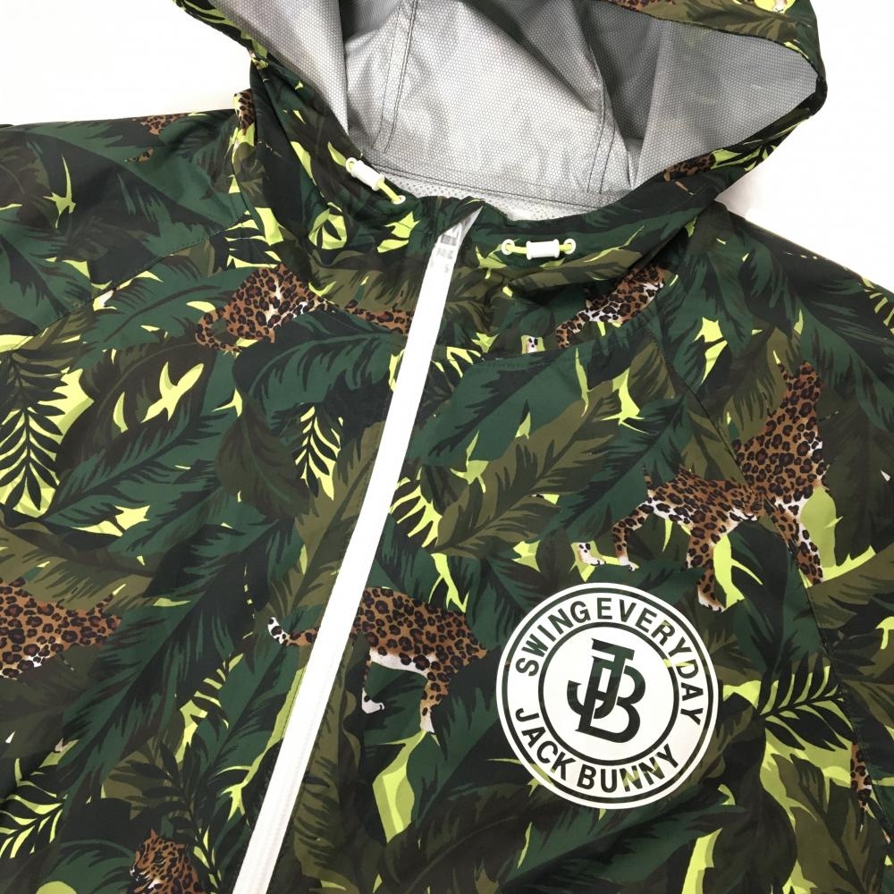 【美品】ジャックバニー ジップパーカー グリーン×ブラウン リーフ総柄 一部レオパード メンズ 5(L) ゴルフウェア Jack Bunny