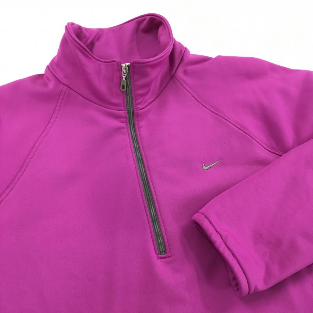 【美品】ナイキゴルフ ブルゾン ピンクパープル ハーフジップ ロゴグレー 裏地付 レディース M ゴルフウェア NIKE