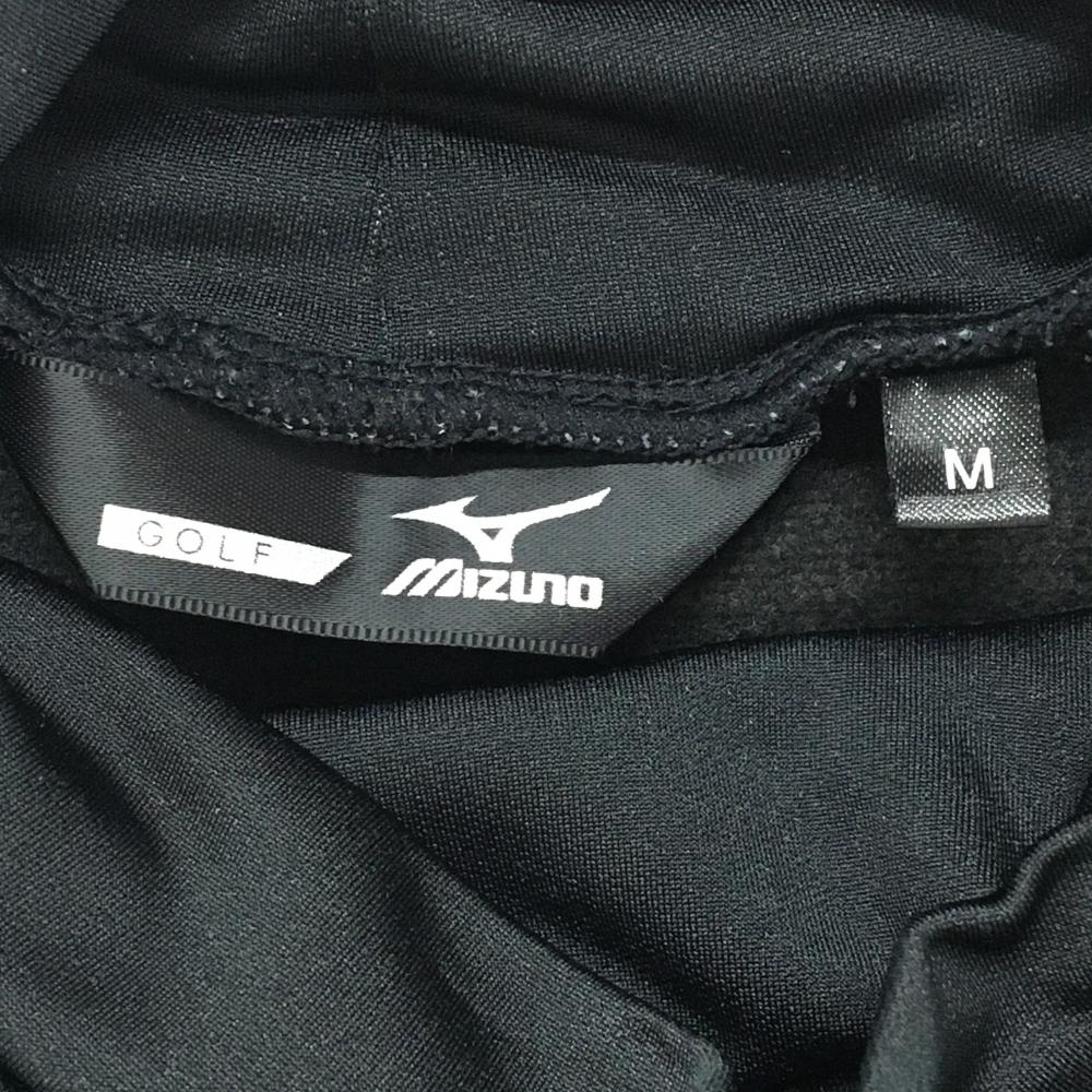 【超美品】ミズノゴルフ 長袖タートルネックシャツ 黒×ライトグレー フロント一部柄 裏微起毛 レディース M ゴルフウェア MIZUNO