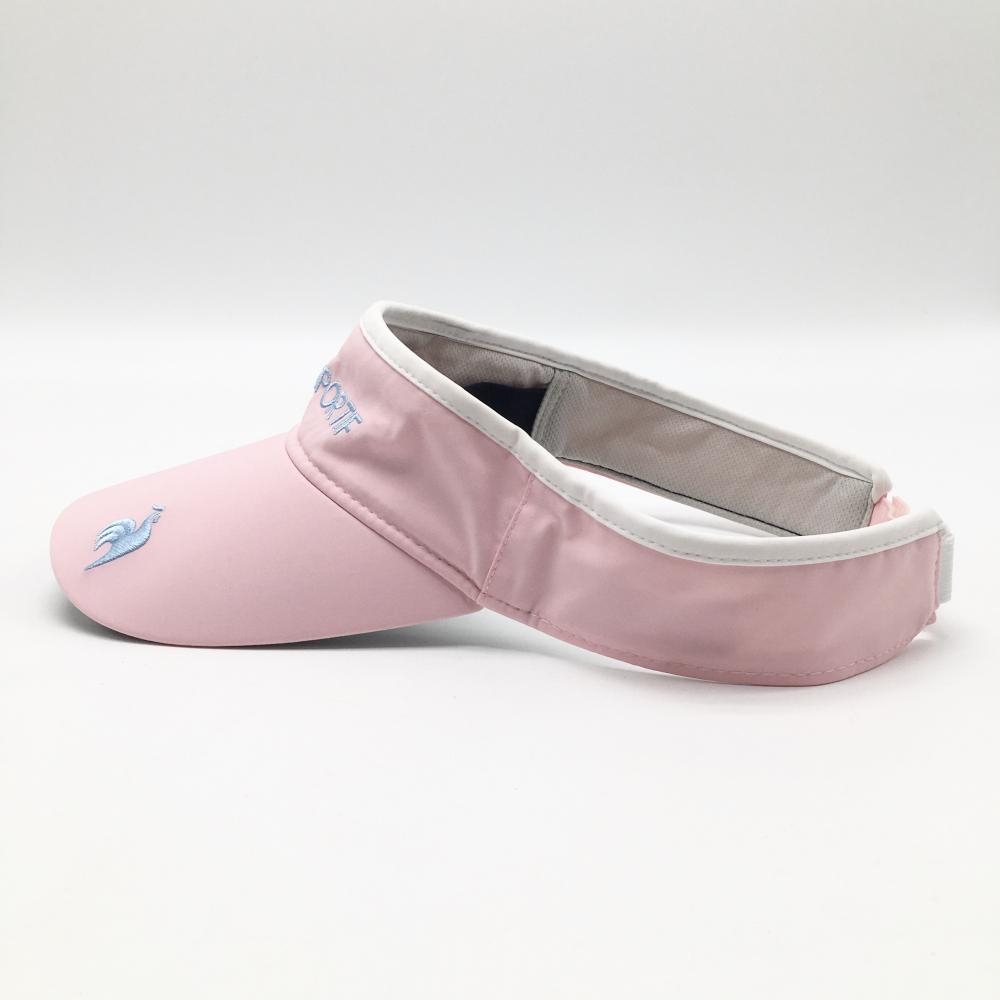 【美品】ルコックゴルフ サンバイザー ピンク×ライトブルー ロゴ刺しゅう F(55-57cm) ゴルフウェア le coq sportif