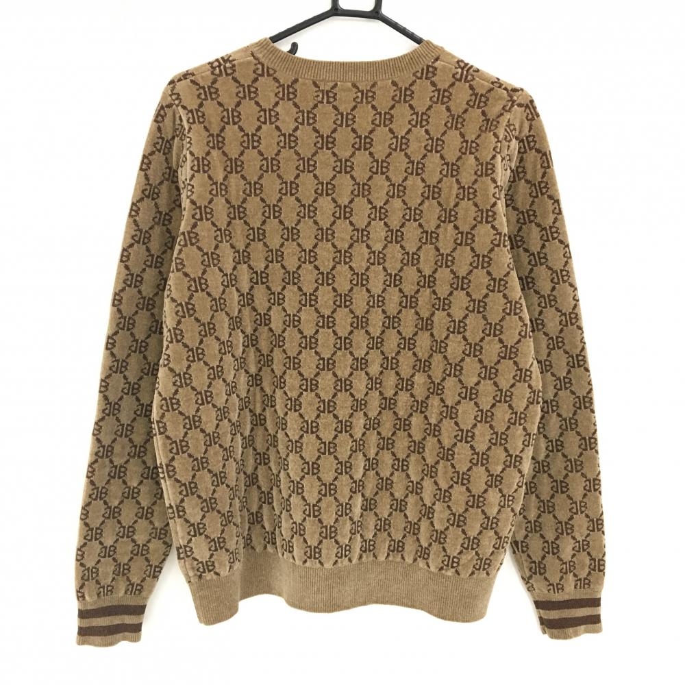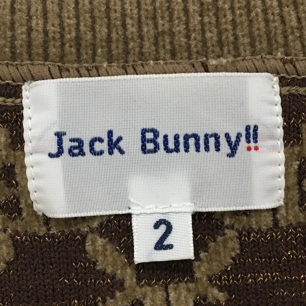【美品】ジャックバニー セーター ライトブラウン×ブラウン ロゴ総柄 起毛素材 ニット レディース 2(L) ゴルフウェア Jack Bunny