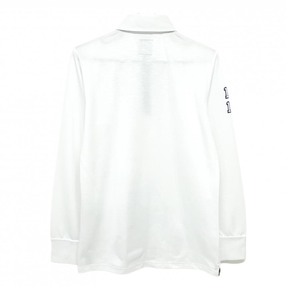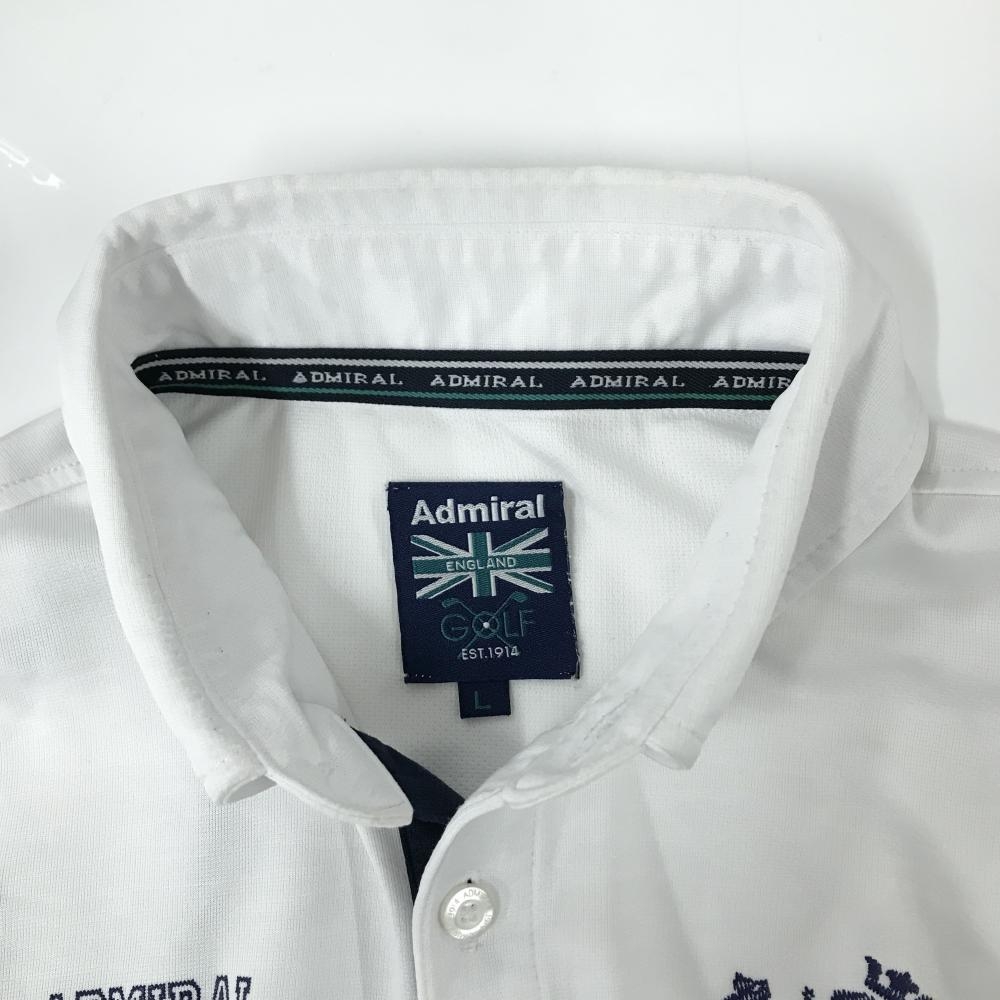 アドミラル 長袖ポロシャツ 白×ネイビー ロゴプリント ボタンダウン メンズ L ゴルフウェア Admiral