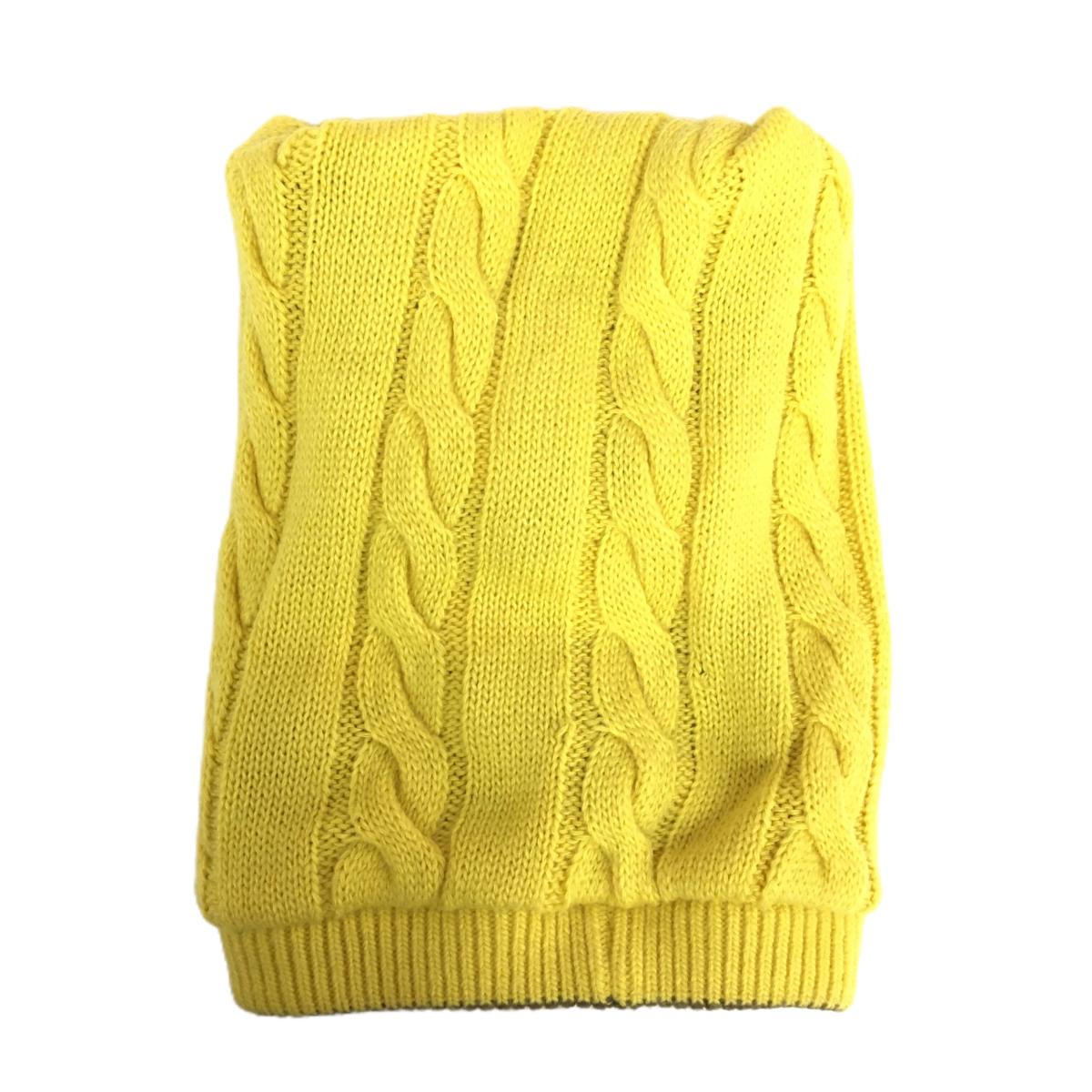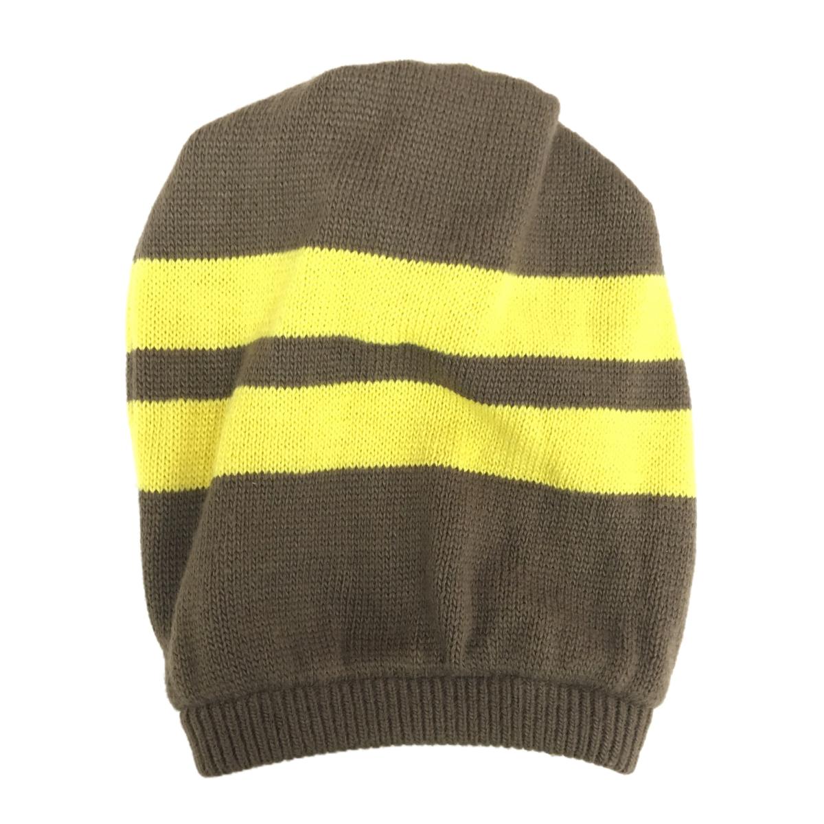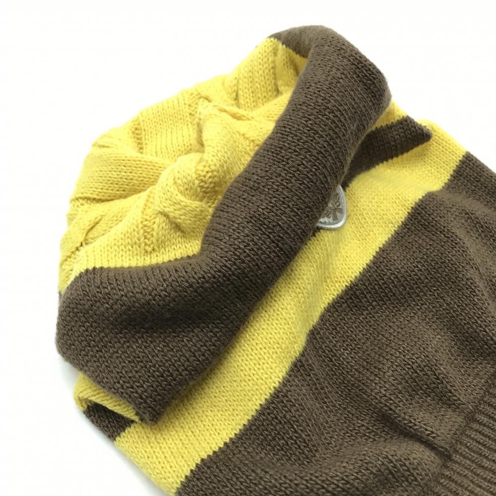 【美品】ヒールクリーク 2WAYニット帽 ブラウン×イエロー ボーダー 裏ケーブル編み リバーシブル ゴルフウェア Heal Creek
