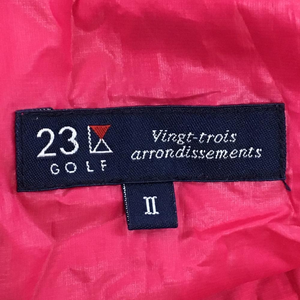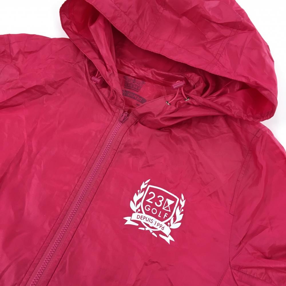【美品】23区ゴルフ ジップパーカー ピンク×白 ロゴプリント 薄手 収納袋付き レディース II(L) ゴルフウェア 23区