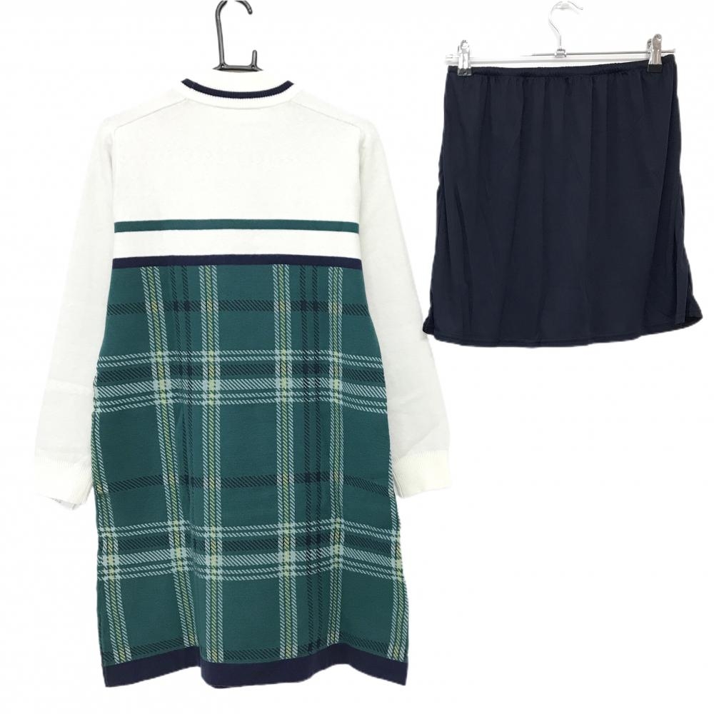 【新品】アドミラル ニットワンピース グリーン×アイボリー 下部チェック ロゴ インナースカート付 レディース LL ゴルフウェア Admiral