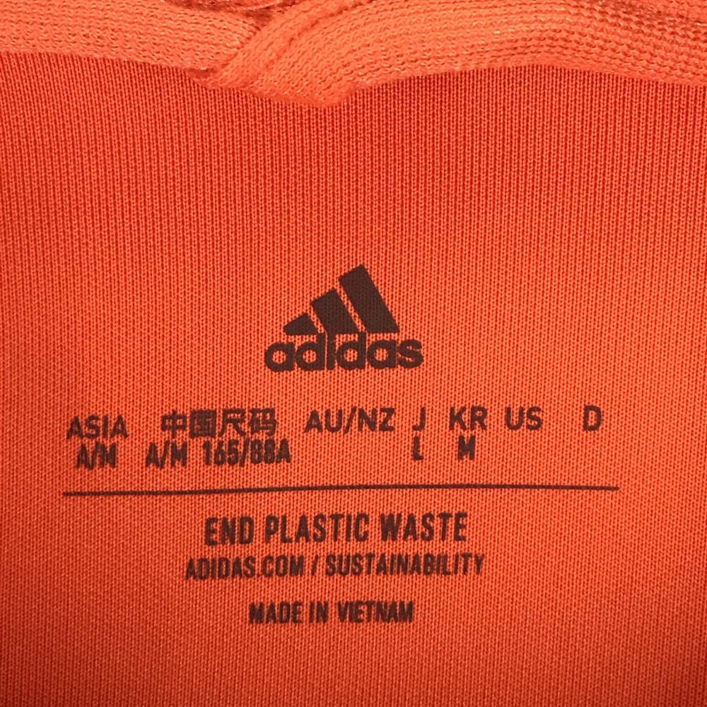 【超美品】アディダス パーカー オレンジ ビッグロゴ ダンボールニット トレーナー レディース L ゴルフウェア adidas