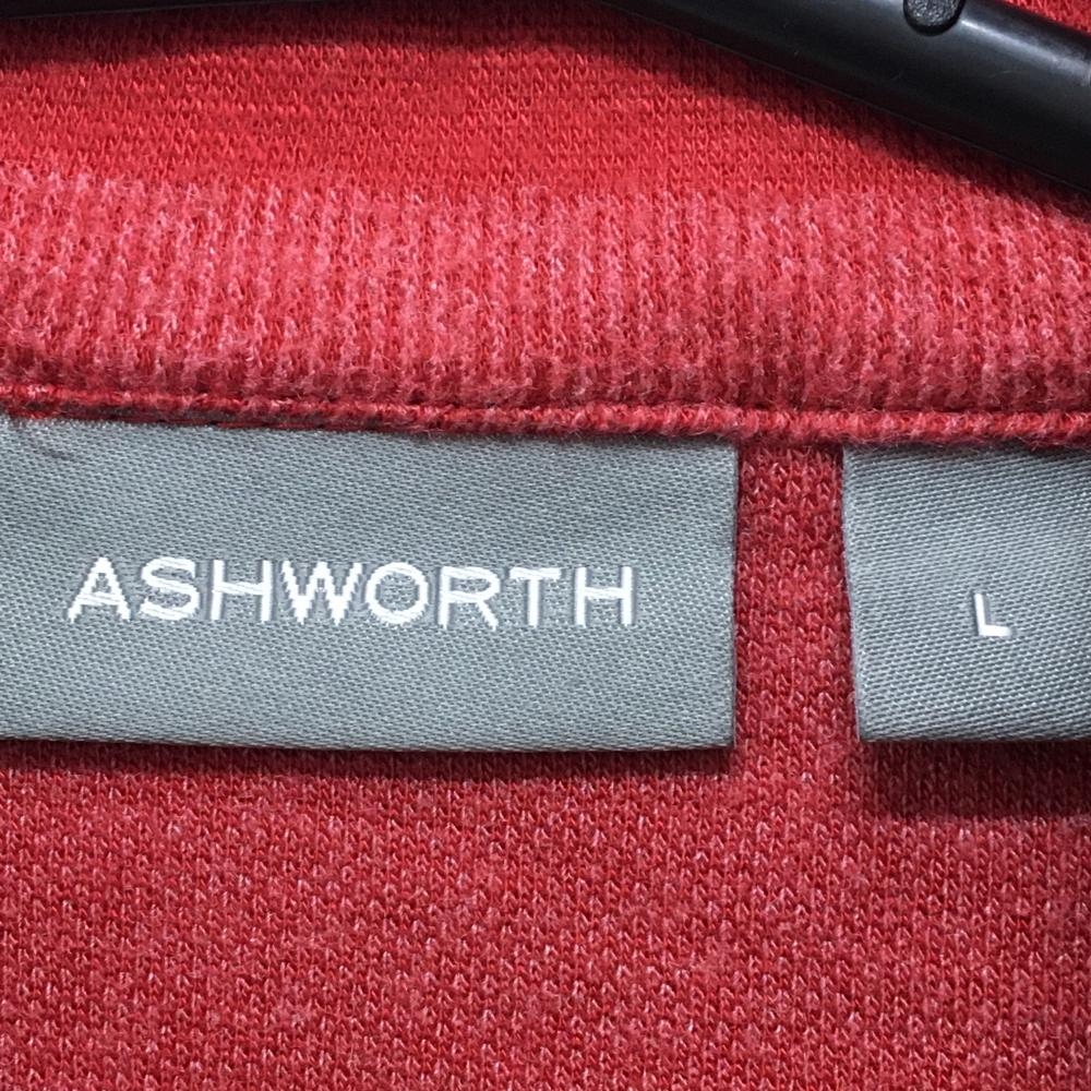 【超美品】アシュワース 長袖ハイネックシャツ レッド系 ボーダー 微起毛素材 ハーフジップ メンズ L ゴルフウェア ASHWORTH