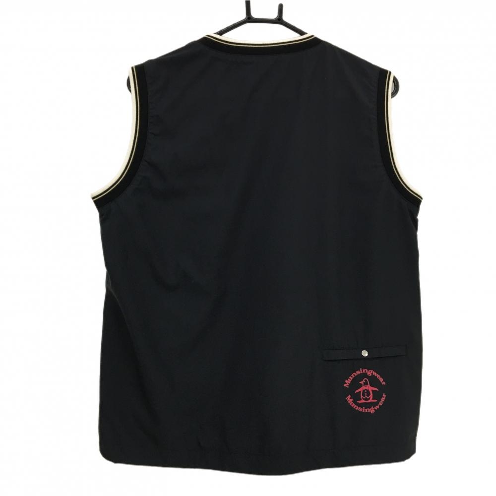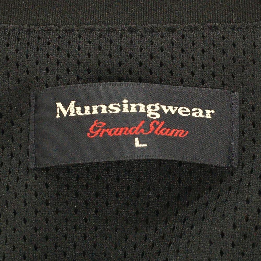 マンシングウェア ベスト 黒×白 ロゴプリント Vネック メッシュ裏地 メンズ L ゴルフウェア Munsingwear