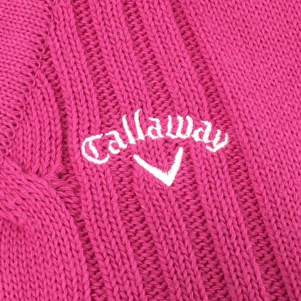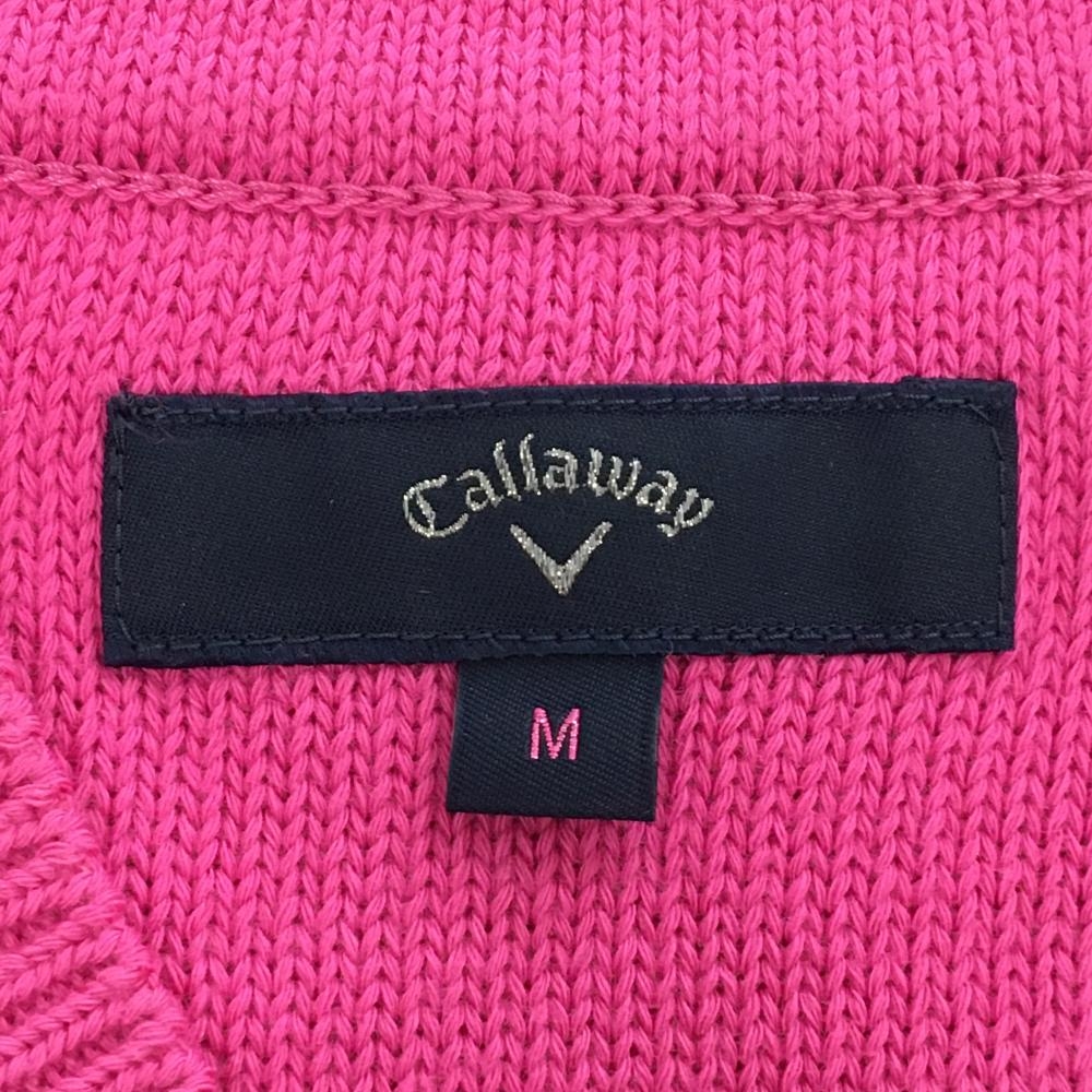 【美品】キャロウェイ ニットベスト ピンク×白 ケーブル編み Vネック ロゴ刺しゅう レディース M ゴルフウェア Callaway