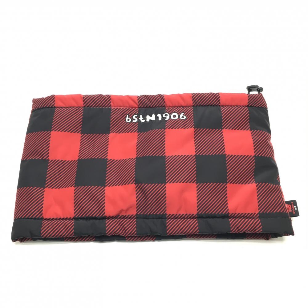 【美品】ニューバランスゴルフ ネックウォーマー レッド×黒 チェック柄 シューズワッペン 裏起毛 FR ゴルフウェア New Balance