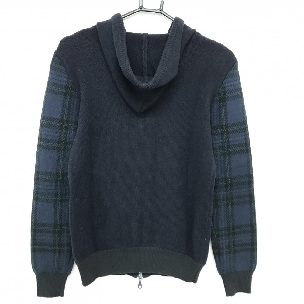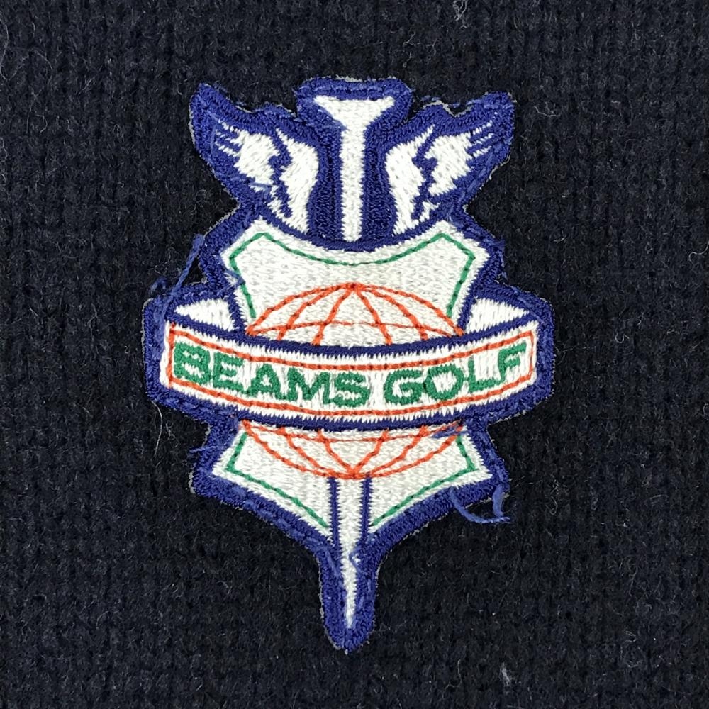 【美品】ビームスゴルフ ジップニットパーカー ネイビー×グリーン 一部チェック ブルゾン ウール混 レディース M ゴルフウェア BEAMS GOLF