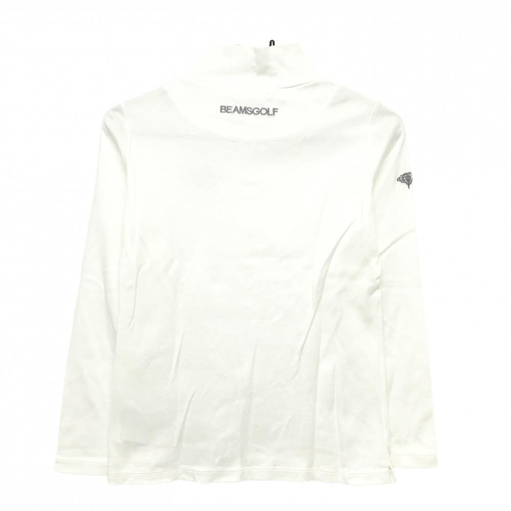 ビームスゴルフ 長袖ハイネックシャツ 白 ロゴ刺しゅうグレー レディース M ゴルフウェア BEAMS GOLF