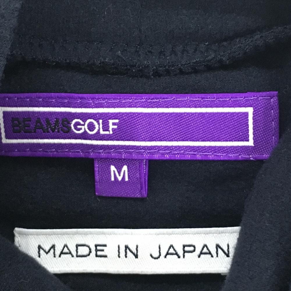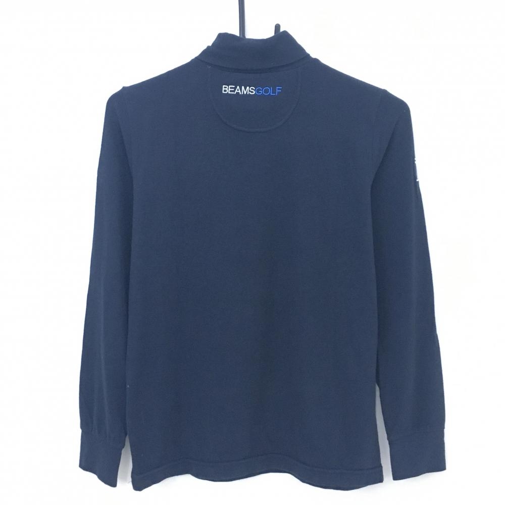 【美品】ビームスゴルフ 長袖ハイネックシャツ ネイビー 表微起毛 ロゴ刺しゅう白 レディース M ゴルフウェア BEAMS GOLF
