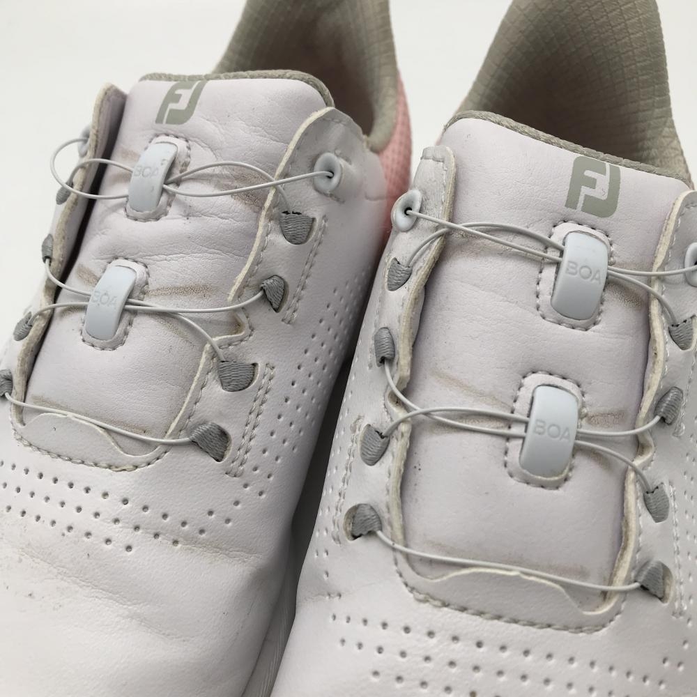 【美品】フットジョイ ゴルフシューズ 白×ピンク 92382J スパイクレス BOA ダイヤル式 レディース 22.5 ゴルフウェア FootJoy