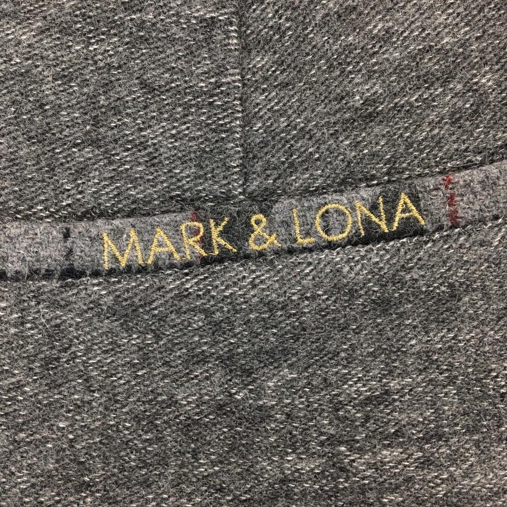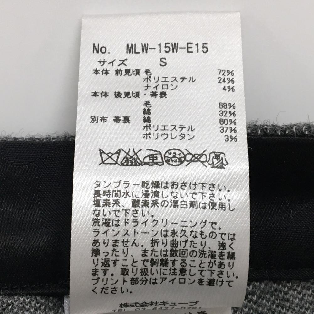 【美品】マークアンドロナ スカート グレー×レッド 前面千鳥格子 ウール混 ラインストーンスカル レディース S ゴルフウェア MARK&LONA
