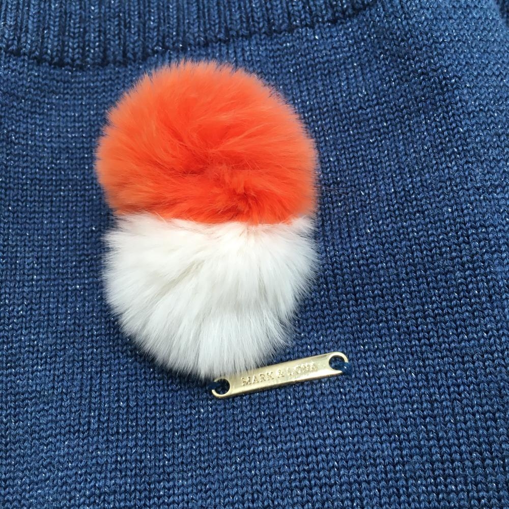 【美品】マークアンドロナ ニットレッグウォーマー ネイビー ラメ ボンボン付 レディース FREE ゴルフウェア MARK&LONA