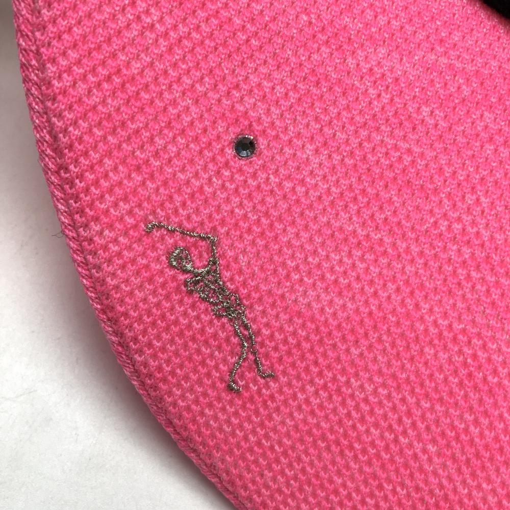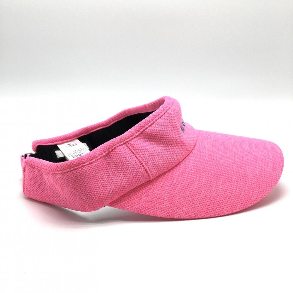 【美品】マークアンドロナ サンバイザー 蛍光ピンク リボン スカル レディース FREE ゴルフウェア MARK&LONA