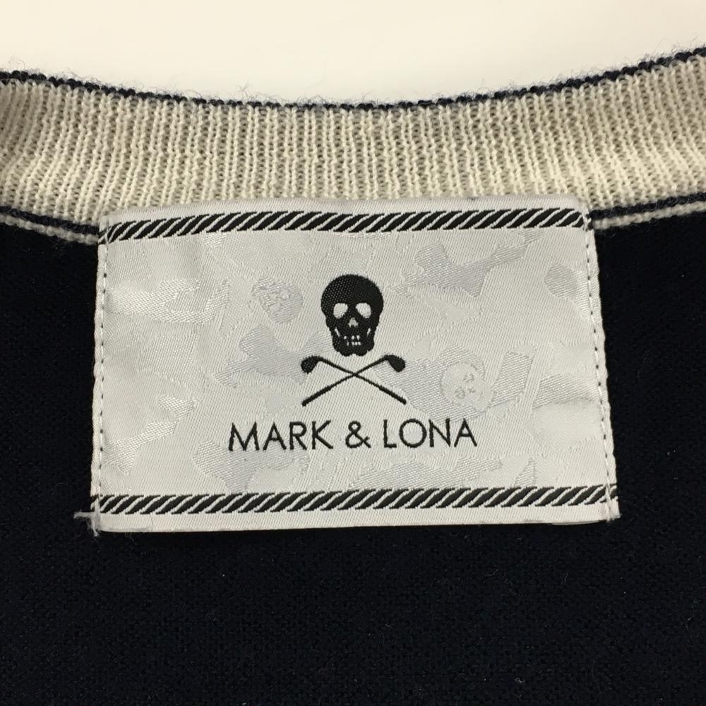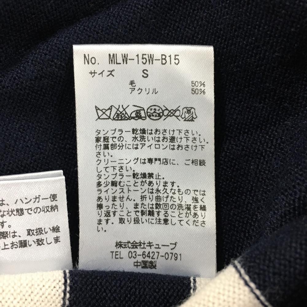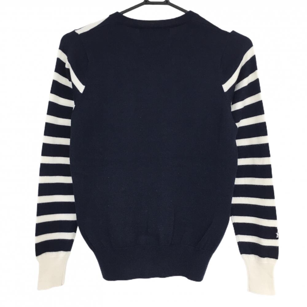 【美品】マークアンドロナ セーター ネイビー×白 ボーダー ハート ラインストーン ニット ウール混 レディース S ゴルフウェア MARK&LONA