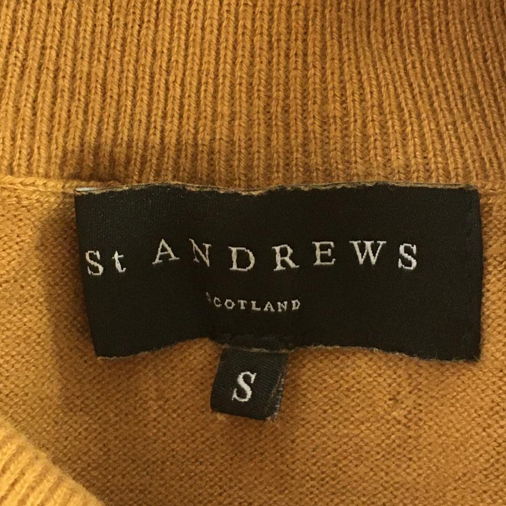 【美品】セントアンドリュース タートルネックセーター ライトブラウン×ゴールド ロゴ刺しゅう レディース S ゴルフウェア St ANDREWS
