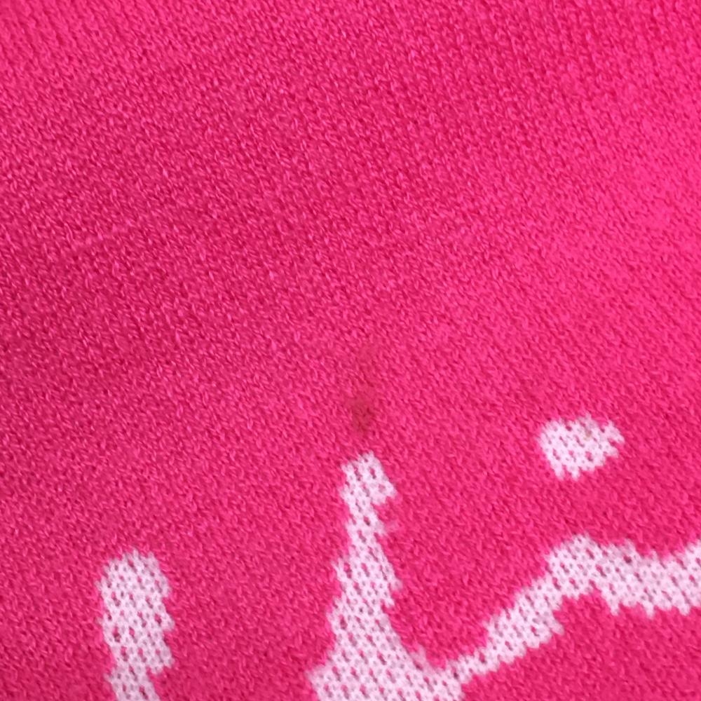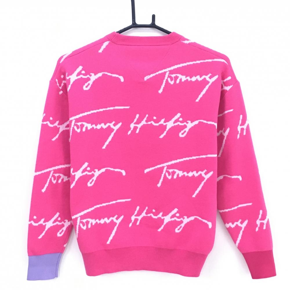 【美品】トミーヒルフィガー セーター ピンク×白 ロゴ総柄 ワッペン ニット レディース S ゴルフウェア Tommy Hilfiger Golf