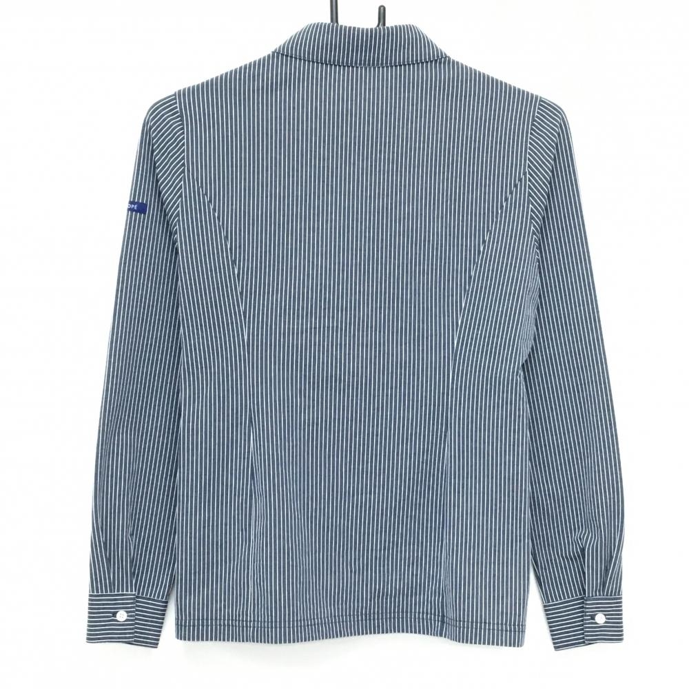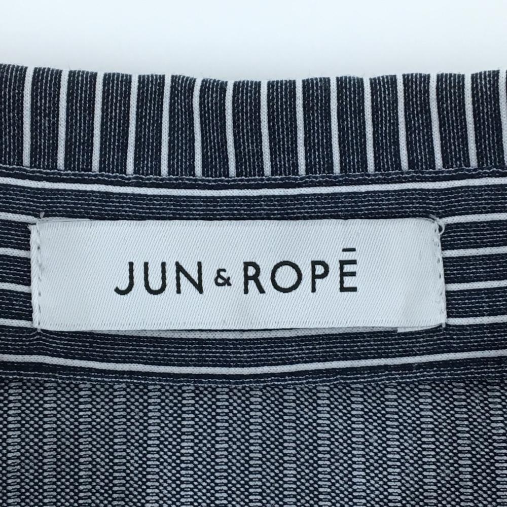 ジュンアンドロペ 長袖ポロシャツ ネイビー×白 ストライプ 胸ポケット レディース S ゴルフウェア JUN&ROPE