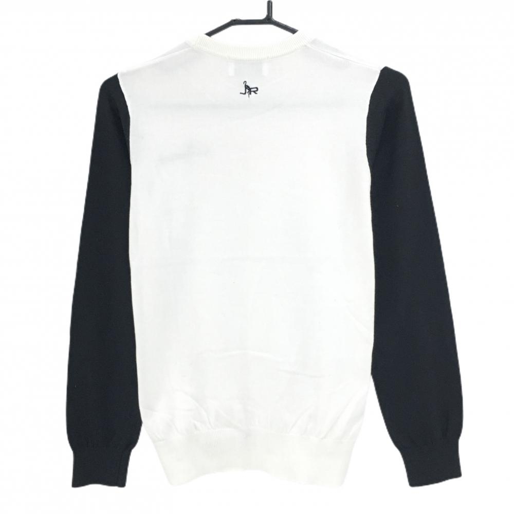【美品】ジュンアンドロペ セーター 白×黒 ロゴ刺しゅう コットン混 ニット レディース M ゴルフウェア JUN&ROPE