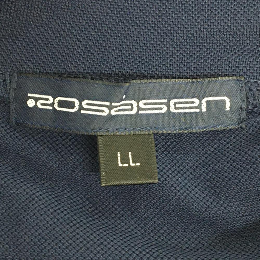 【超美品】ロサーセン 長袖ハイネックシャツ ネイビー×グレー 胸・袖口ロゴ ストレッチ メンズ LL ゴルフウェア Rosasen