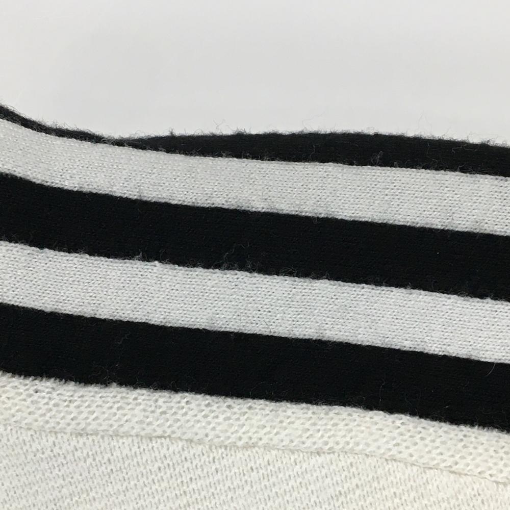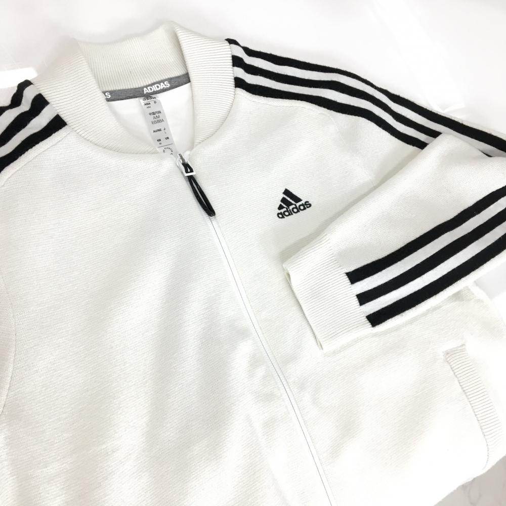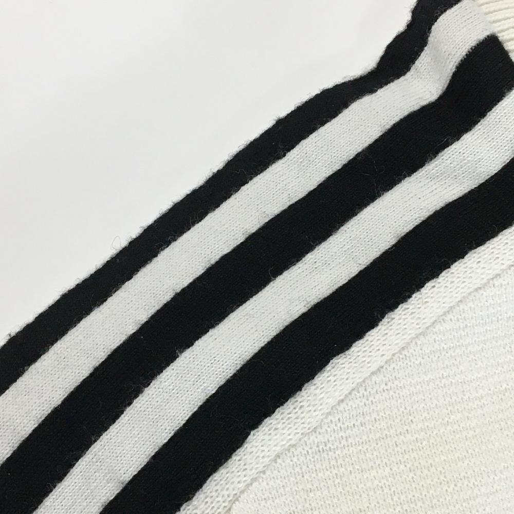 アディダス ニットジャケット 白×黒 肩3ライン 裏地付き ロゴ刺しゅう ウール混 レディース L ゴルフウェア adidas