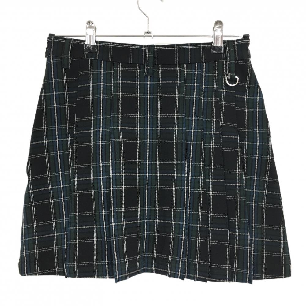【超美品】サマンサタバサUNDER25 プリーツスカート 黒×グリーン チェック柄 裾刺しゅう レディース M ゴルフウェア Samantha Thavasa
