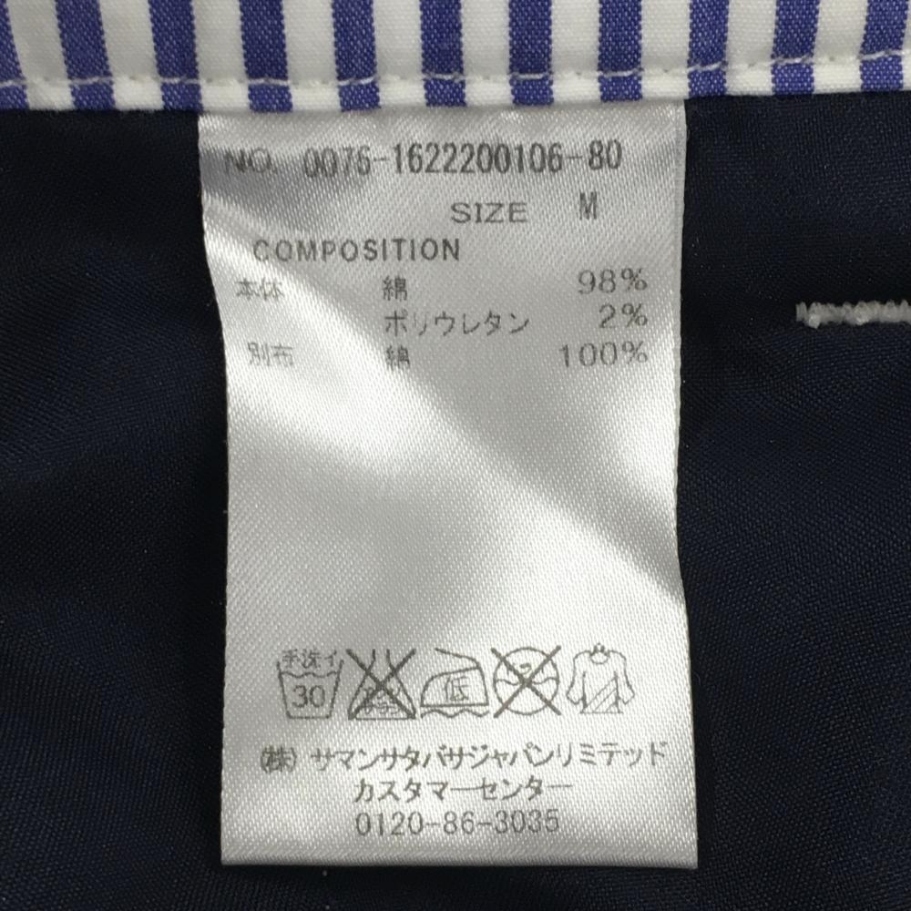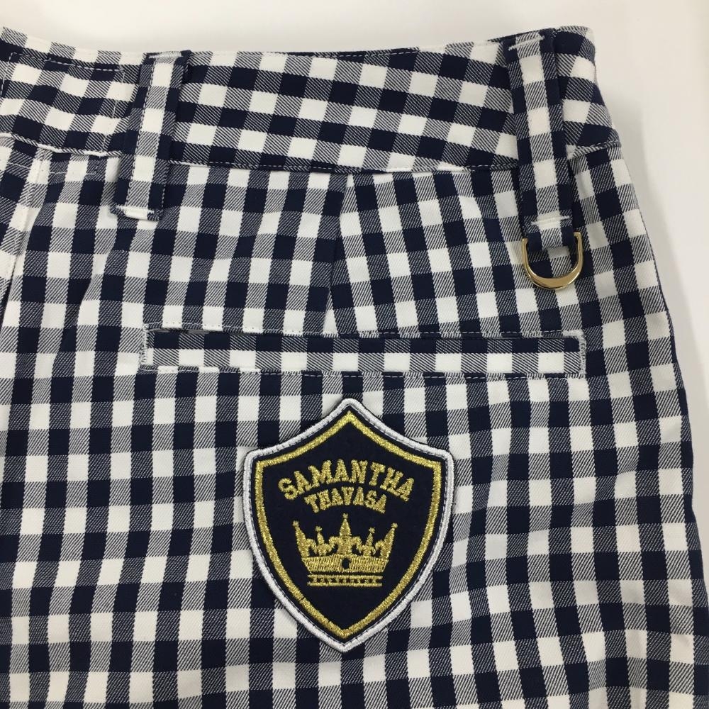 【超美品】サマンサタバサ ショートパンツ 白×ネイビー チェック柄 ロゴワッペン レディース M ゴルフウェア Samantha Thavasa