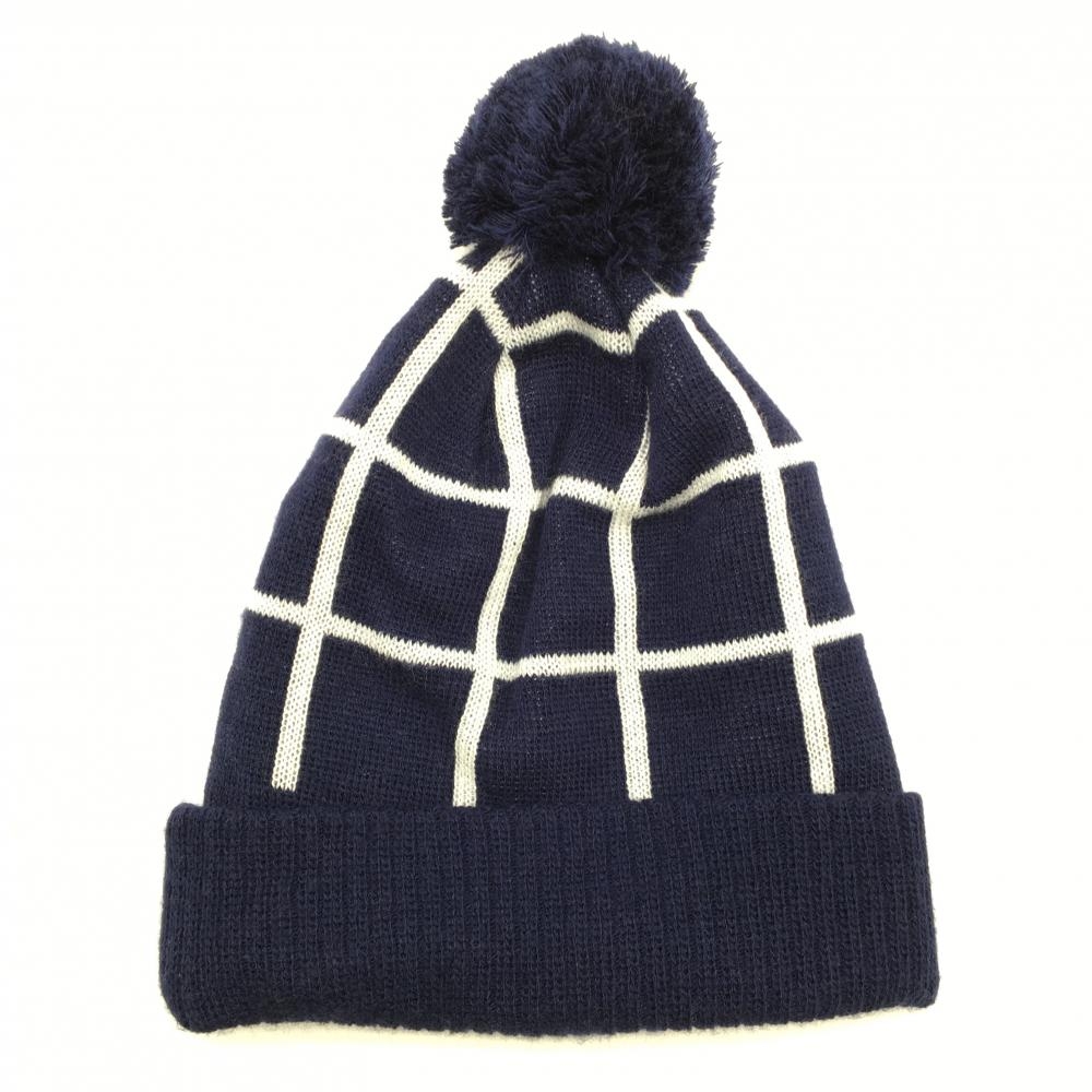 【超美品】サマンサタバサ ニット帽 ネイビー×白 格子柄 ボンボン付き ウール混 レディース F ゴルフウェア Samantha Thavasa