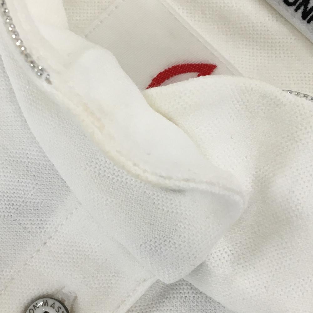 【超美品】マスターバニー 長袖ポロシャツ 白 千鳥格子地模様 スタンドカラー ロゴ黒 レディース 0(S) ゴルフウェア MASTER BUNNY EDITION