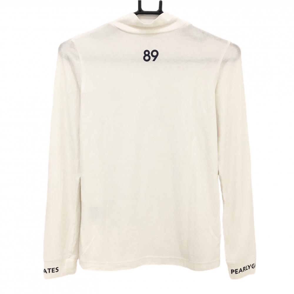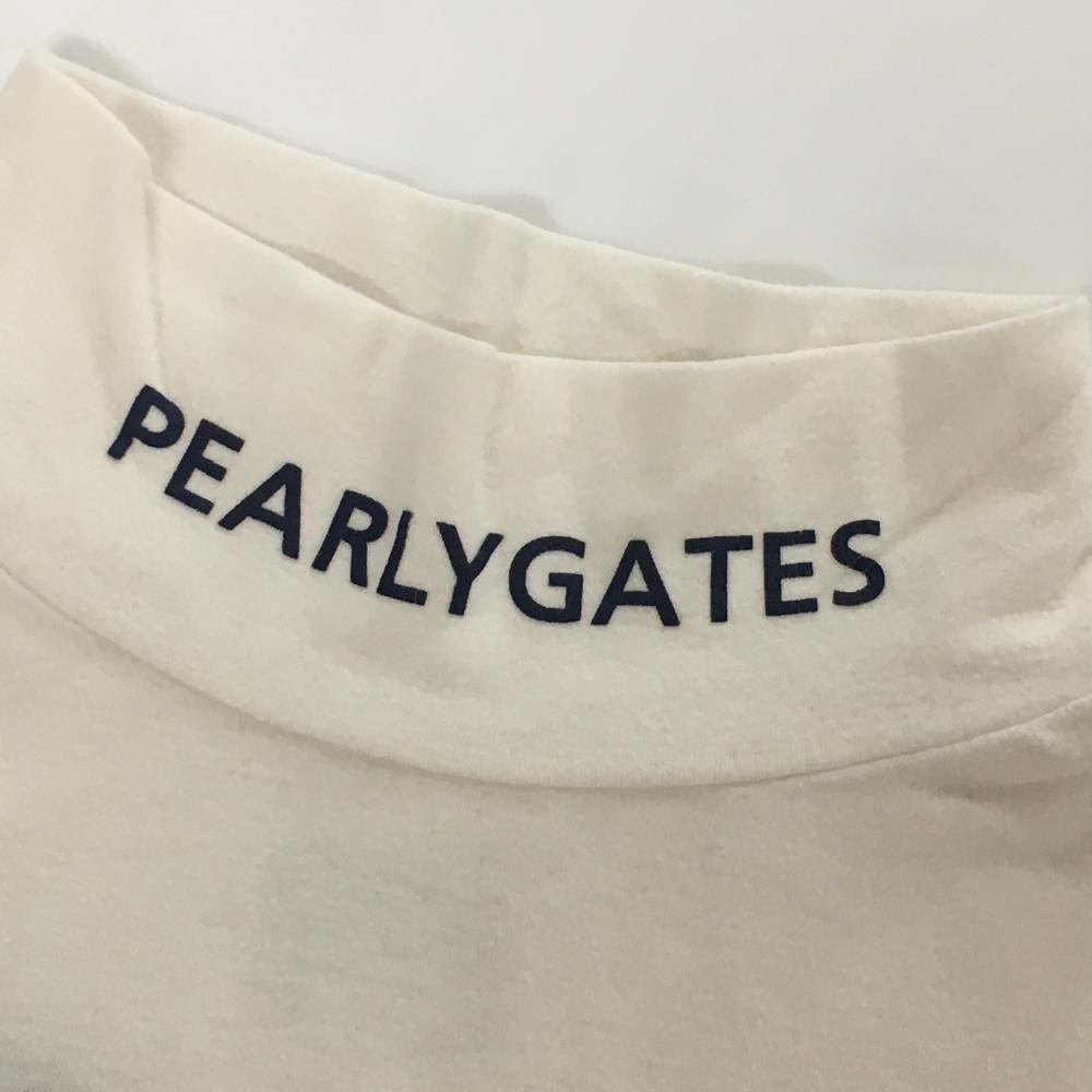 パーリーゲイツ 長袖ハイネックシャツ 白×ネイビー ロゴプリント インナー レディース 0(S) ゴルフウェア PEARLY GATES