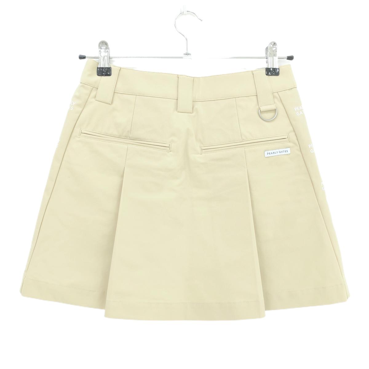 【超美品】パーリーゲイツ スカート ベージュ×白 サイドロゴプリント レディース 0(S) ゴルフウェア 2025年モデル PEARLY GATES