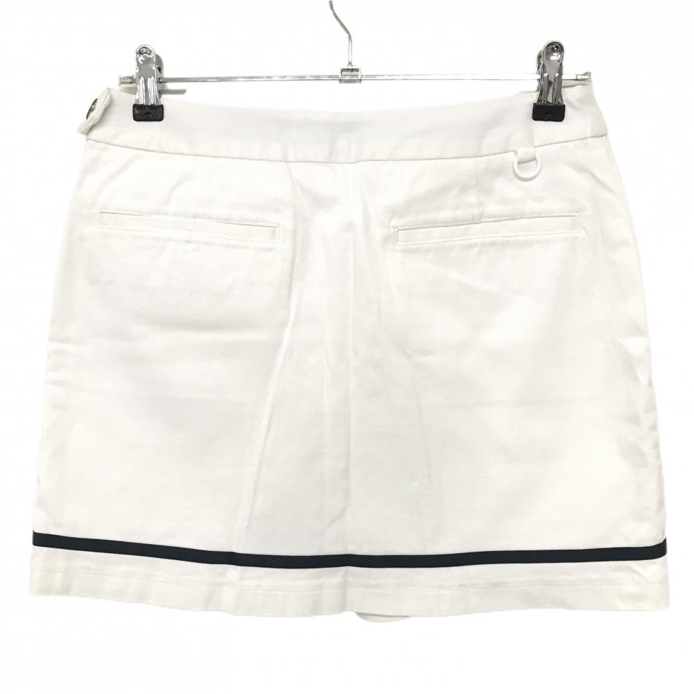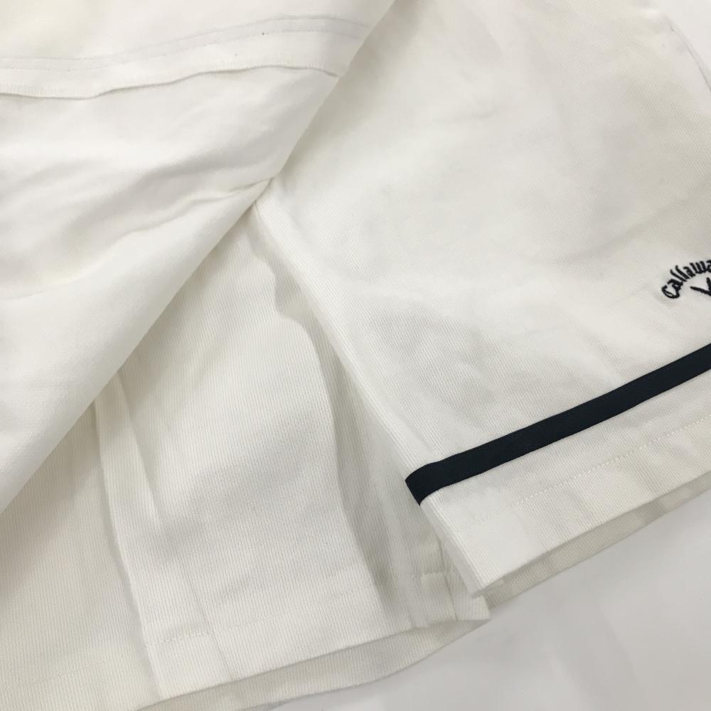 【美品】キャロウェイ スカート 白×ネイビー 裾ロゴ ラップスカート風 ストレッチ レディース L ゴルフウェア Callaway
