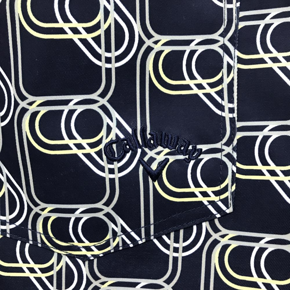 【超美品】キャロウェイ スカート ネイビー×ライトイエロー×グレー系 柄 サイドプリーツ レディース LL ゴルフウェア Callaway