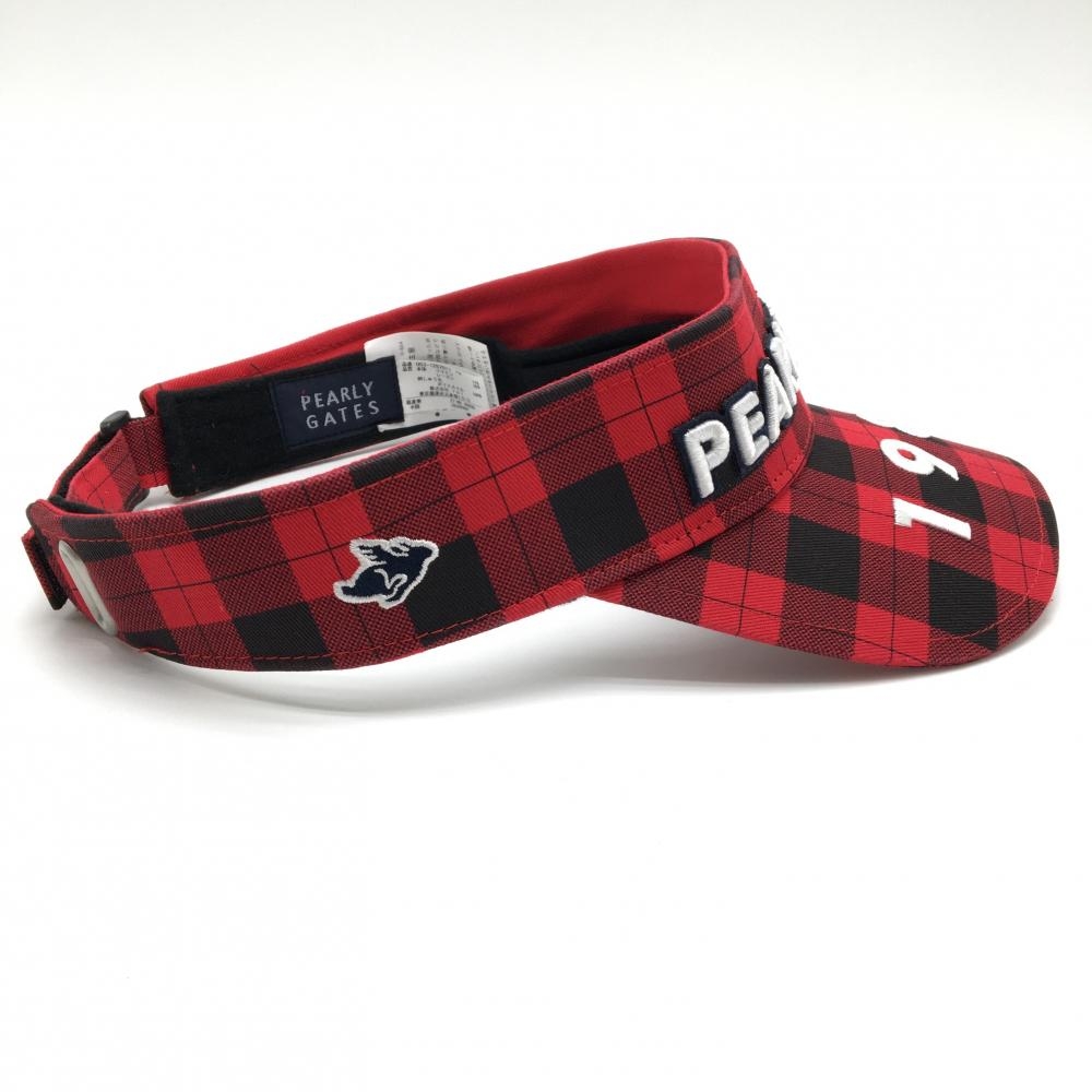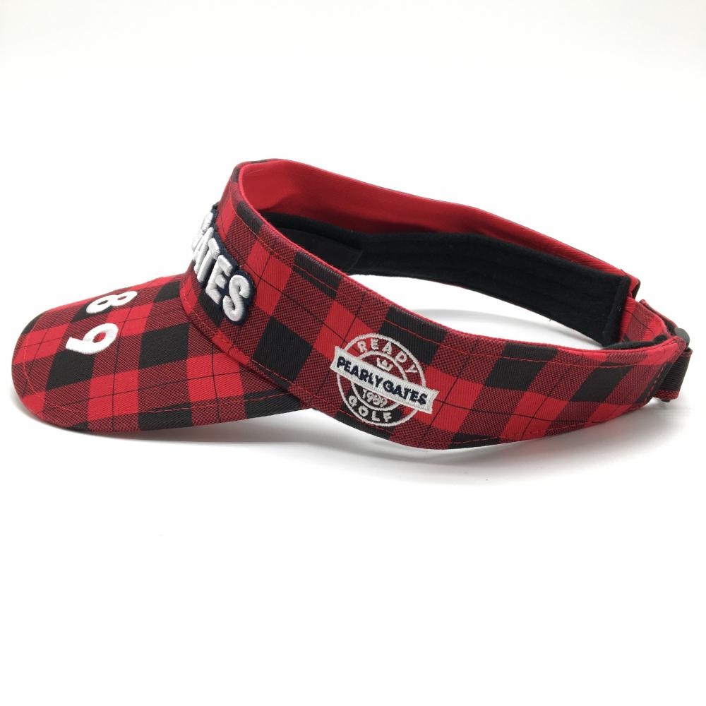 【超美品】パーリーゲイツ サンバイザー レッド×黒 チェック 汗取りパッド FR ゴルフウェア PEARLY GATES