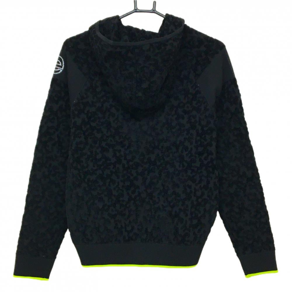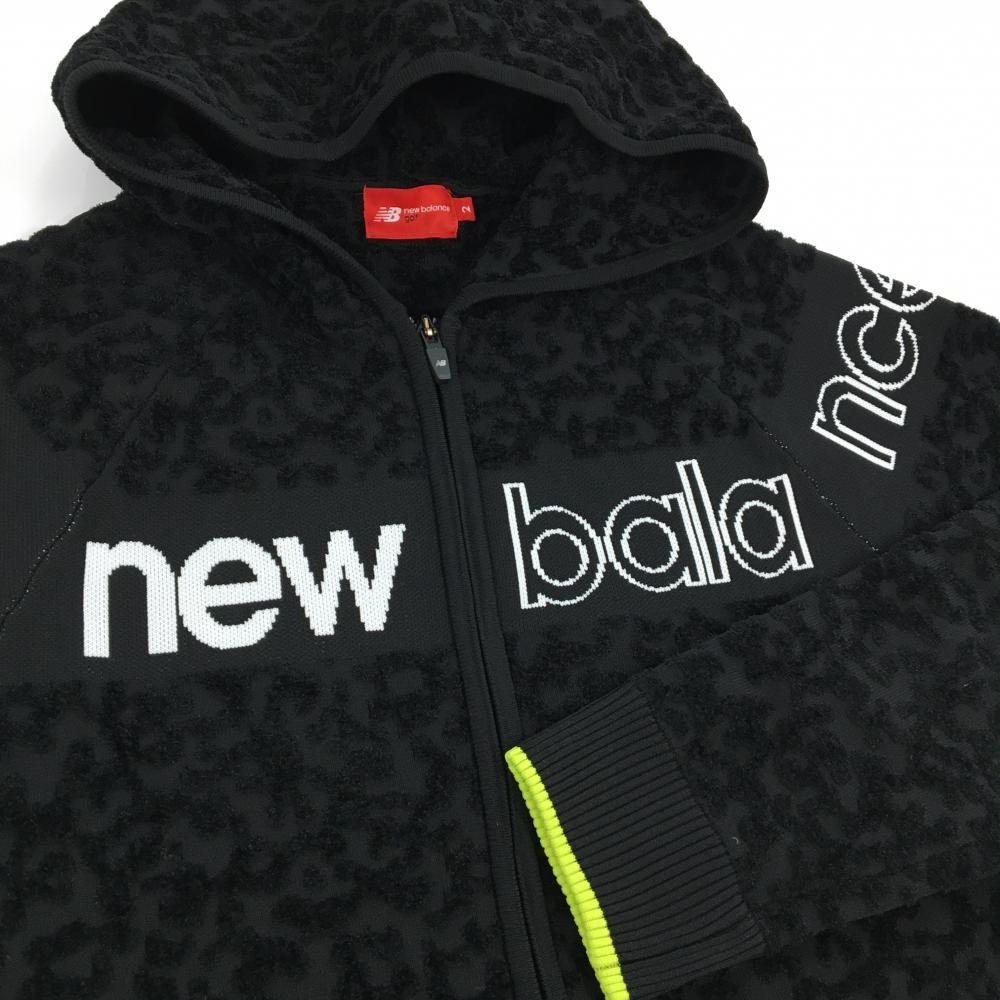 【超美品】ニューバランスゴルフ ニットジップパーカー 黒 地模様 ロゴ ジャケット レディース 2(L) ゴルフウェア New Balance